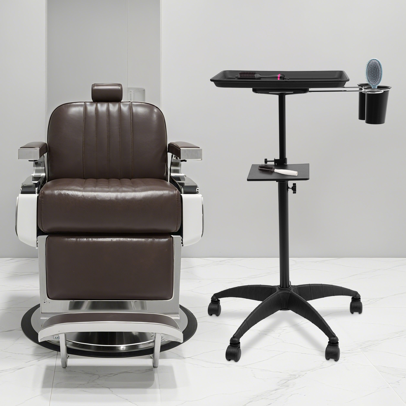 - Величезна ємність для зберігання: Включає два лотки для зберігання перукарських інструментів, таких як ножиці та гребінці, а також два бокових відсіки для зберігання фенів і плойок, щоб все було акуратно доступним.