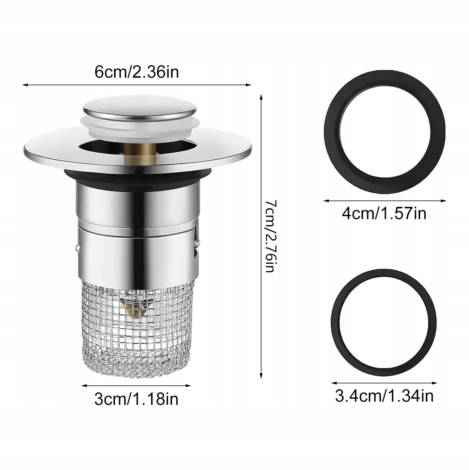 ✔️✔️✔️【Легко встановити】: Діаметр установки фільтра для раковини: 6 см, висота: 7 см, внутрішній діаметр: 3 см, проста установка без інструментів, просто вставте його безпосередньо в підлоговий сифон такого ж розміру, підходить для більшості будинків і точний підходить без послаблення.