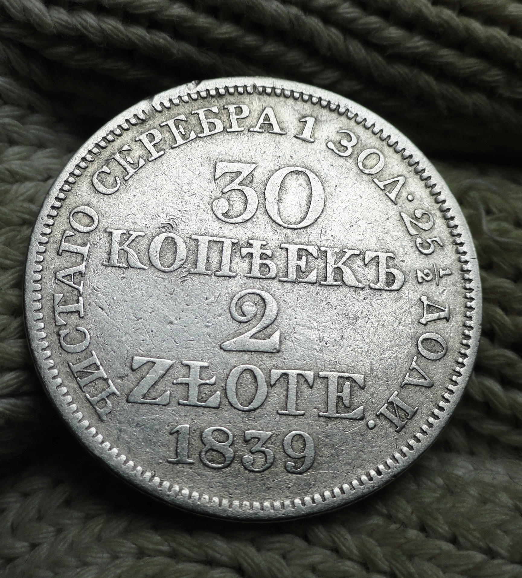2 злотих / 30 копійок ВІД 1839 РОКУ ОРИГІНАЛ