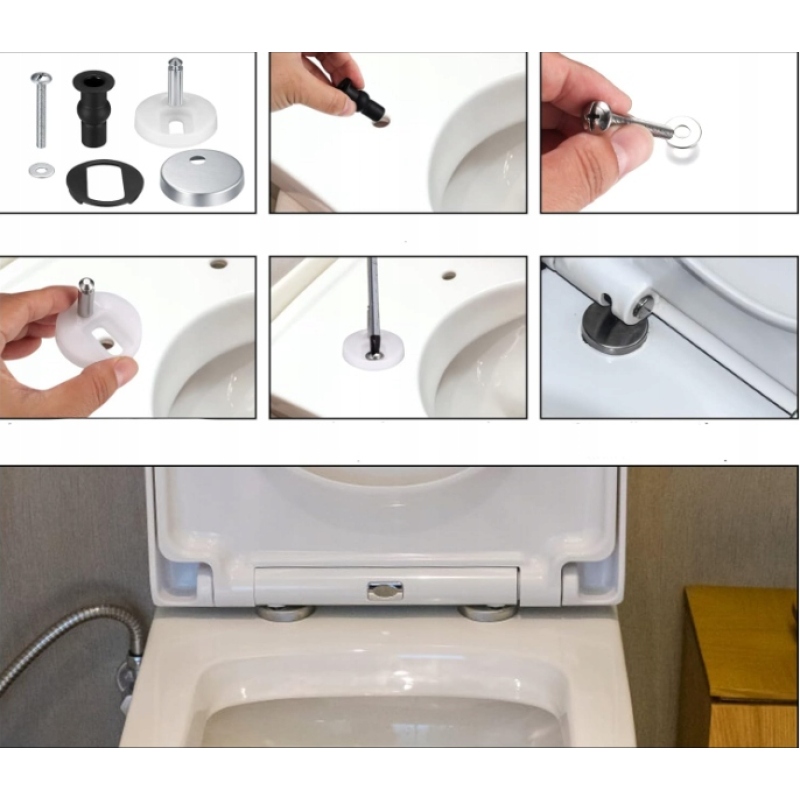 Гумова гвинтова шайба має різьбову частину, яка може розширюватися та затягуватися під час натискання на отвір унітазу. Просто встановіть кришку унітазу та петлю для сидіння унітазу один раз, і вам більше ніколи не доведеться турбуватися про свій унітаз, і він прослужить вам роками!