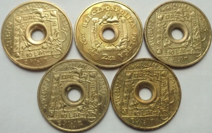 2 ЗОЛОТИХ GN - НАБІР МОНЕТ -2003- ВЕЛИКИЙ ОРКЕСТР ПРЕЗИДЕНТІВ - WOŚP - 5 МОНЕТ -KO6