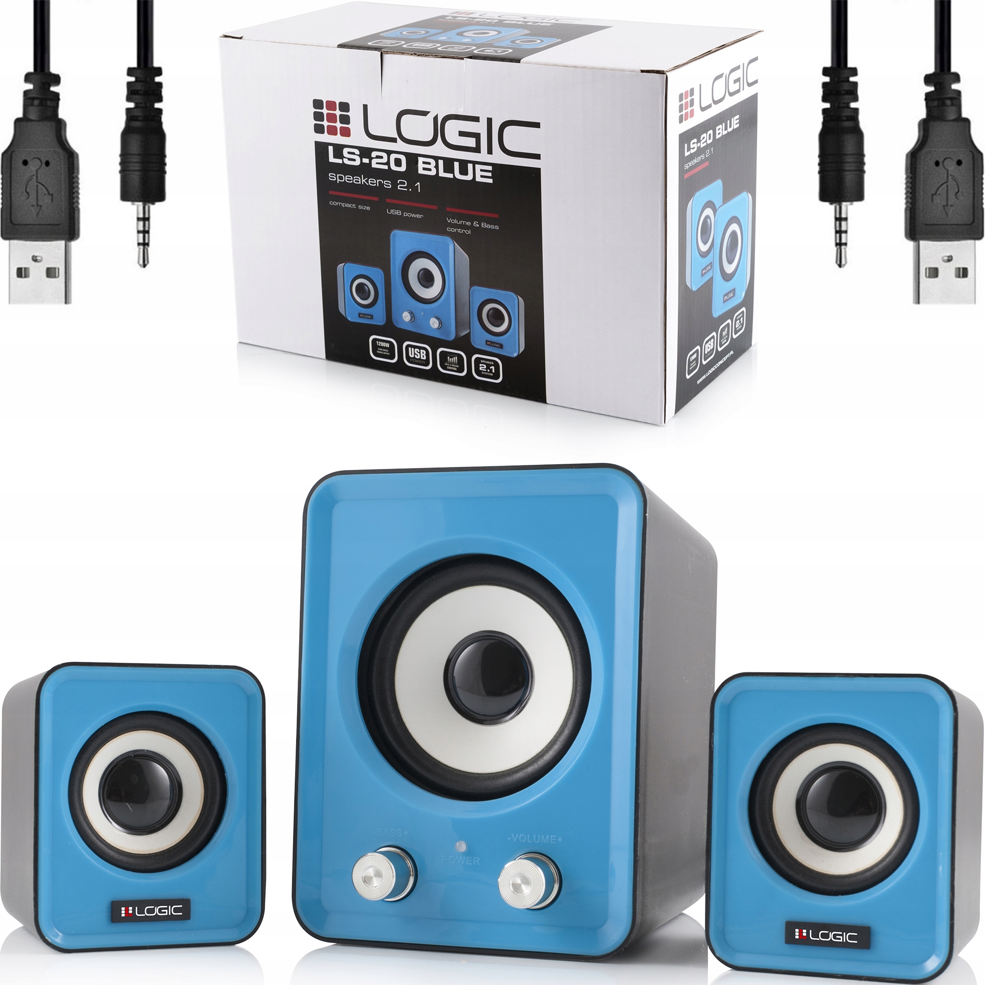 набір динаміків 2.1, що складається з двох динаміків-сателітів (кожний із потужністю 3 Вт) та одного низькочастотного динаміка (потужністю 5 Ватт). Набір LS-20 відрізняється якісним звуком і привабливим сучасним дизайном. LS-20 — це пропозиція для кожного меломана, який шукає маленькі динаміки для настільного або портативного комп’ютера. Завдяки невеликим розмірам і легкій конструкції їх можна легко і зручно транспортувати, наприклад, з дому на зустріч з друзями. Дві ручки, розташовані на передній частині НЧ-динаміка, дозволяють легко регулювати гучність всього наборуі дозволяють збільшувати або зменшувати інтенсивність підсилення басів. З живленням від USB-кабелю колонки приносять багато радості всім користувачам під час перегляду фільмів або будь-яких інших мультимедійних розваг. Динаміки LS-20 також вражають естетично, синій колір надає сучасного вигляду.