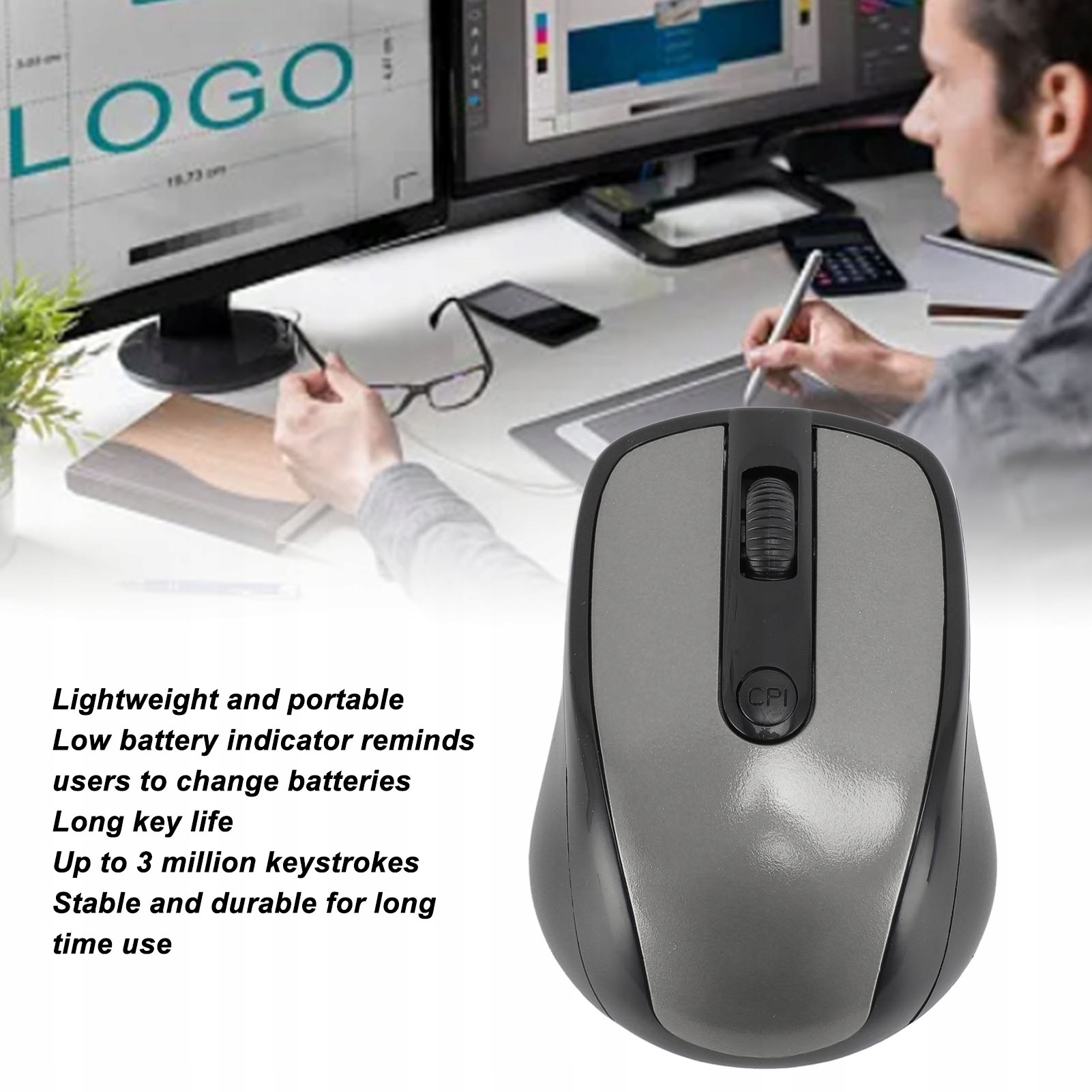 4. Робоча продуктивність: оптичний механізм цієї миші забезпечує плавне та точне відстеження на робочій відстані до 10 метрів. Він сумісний із 2 батарейками типу ААА (не вставленими).