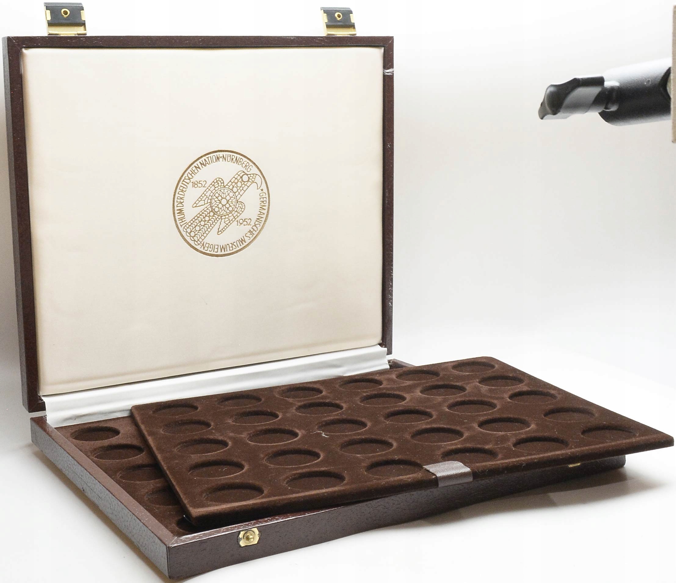 - Опис: Ми пропонуємо вам елегантну коробку для безпечного зберігання та справді професійної демонстрації монет. Розміри коробки: прибл. 26 см х 22 см х 3 см. Розетки діаметром прибл. 30 мм. На підкладці коричневий матеріал. Шкіряна обробка. Магнітна засувка. Незначні сліди використання. Якщо ви виграєте більше аукціонів, вартість доставки буде визначено.