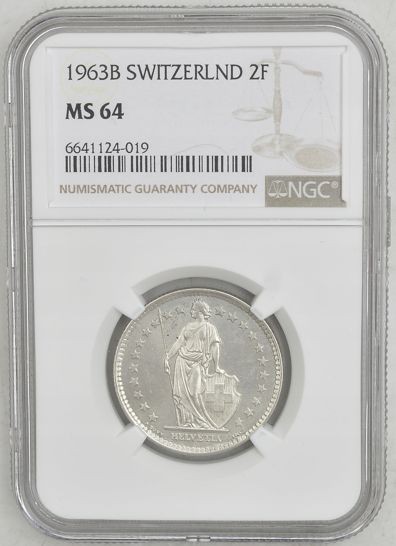 2.db.SZWAJCARIA , 2 ФРАНКИ 1963, NGC MS64