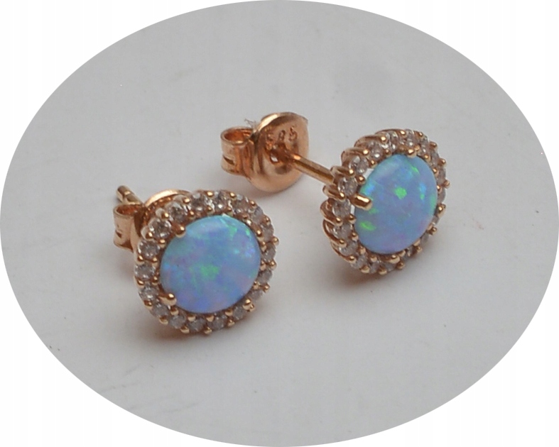 2.hg.ZŁOTE СЕРЕЖКИ з ОПАЛОМ і БЛИСКУЧИМИ КАМІНЦЯМИ