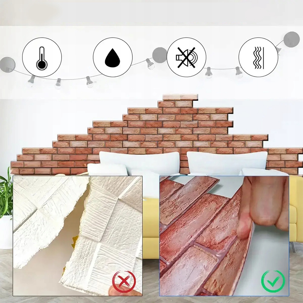🧱Широкі області застосування: дуже реалістичні пластикові імітації. Самоклеючі 3D панелі ідеально підходять для ванних кімнат, кухонь, стін під телевізор і коридорів. Гладкі стіни забезпечують хороше зчеплення шпалер і продовжують термін їх служби.
