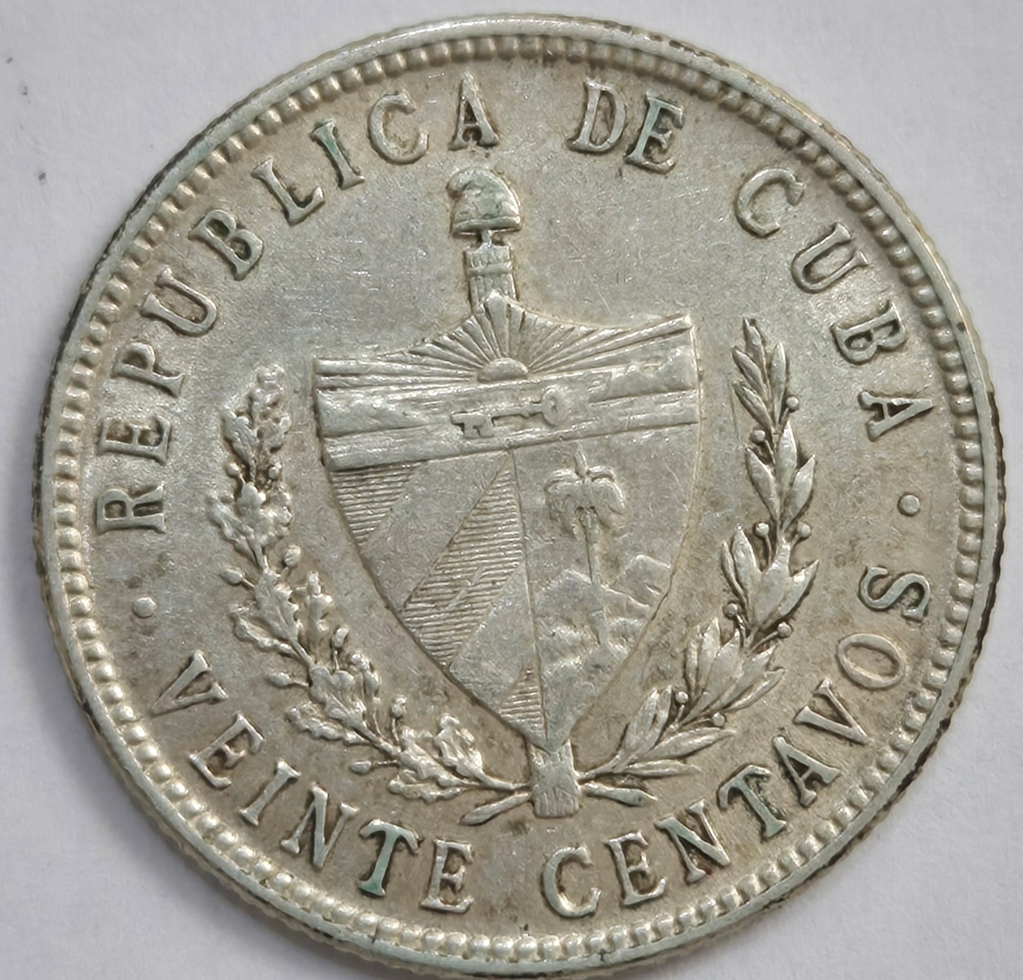 20 Centavos Kuba 1949 - Срібло - Прекрасна копія з історією на задньому плані