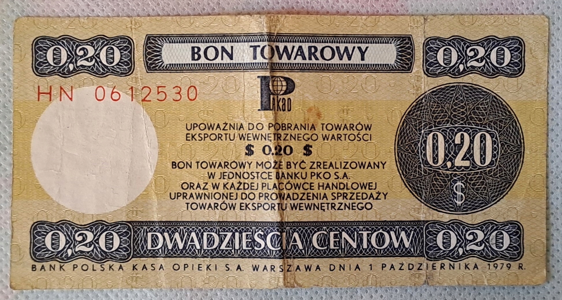 20 centów 1979 bon towarowy Pewex seria HN