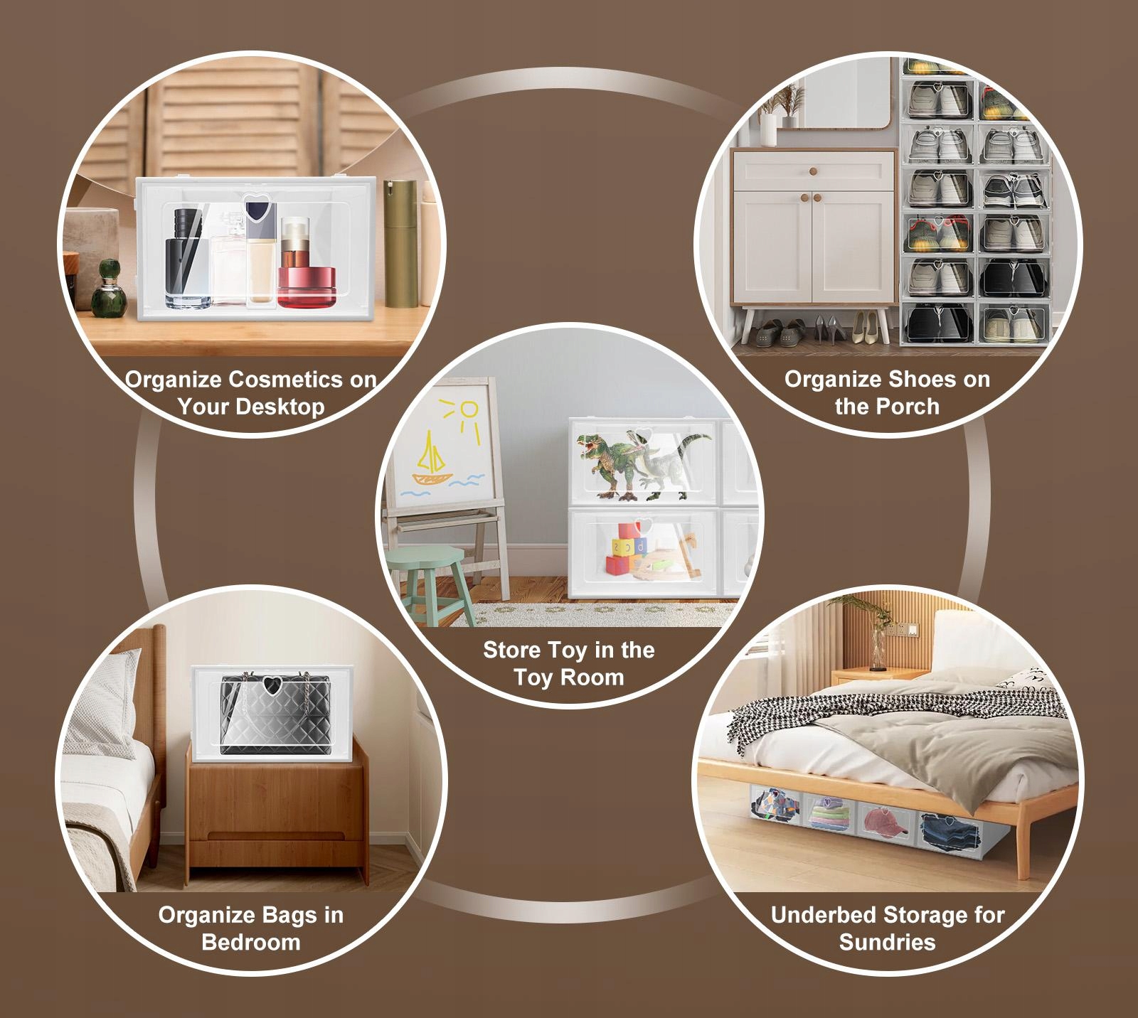 Прекрасне життя починається з організованого зберігання. Набір з 20 організаторів взуття достатньо для ваших акуратних потреб. Прозорий дизайн означає, що ваша колекція може відображатися, а також дозволяє легко знайти правильне взуття, не відкриваючи коробку. Крім того, це може максимально заощадити місце і зберегти акуратний і гарний будинок. Якщо ви все ще боретеся з неохайними взуттями, спробуйте організаторів для укладання взуття!