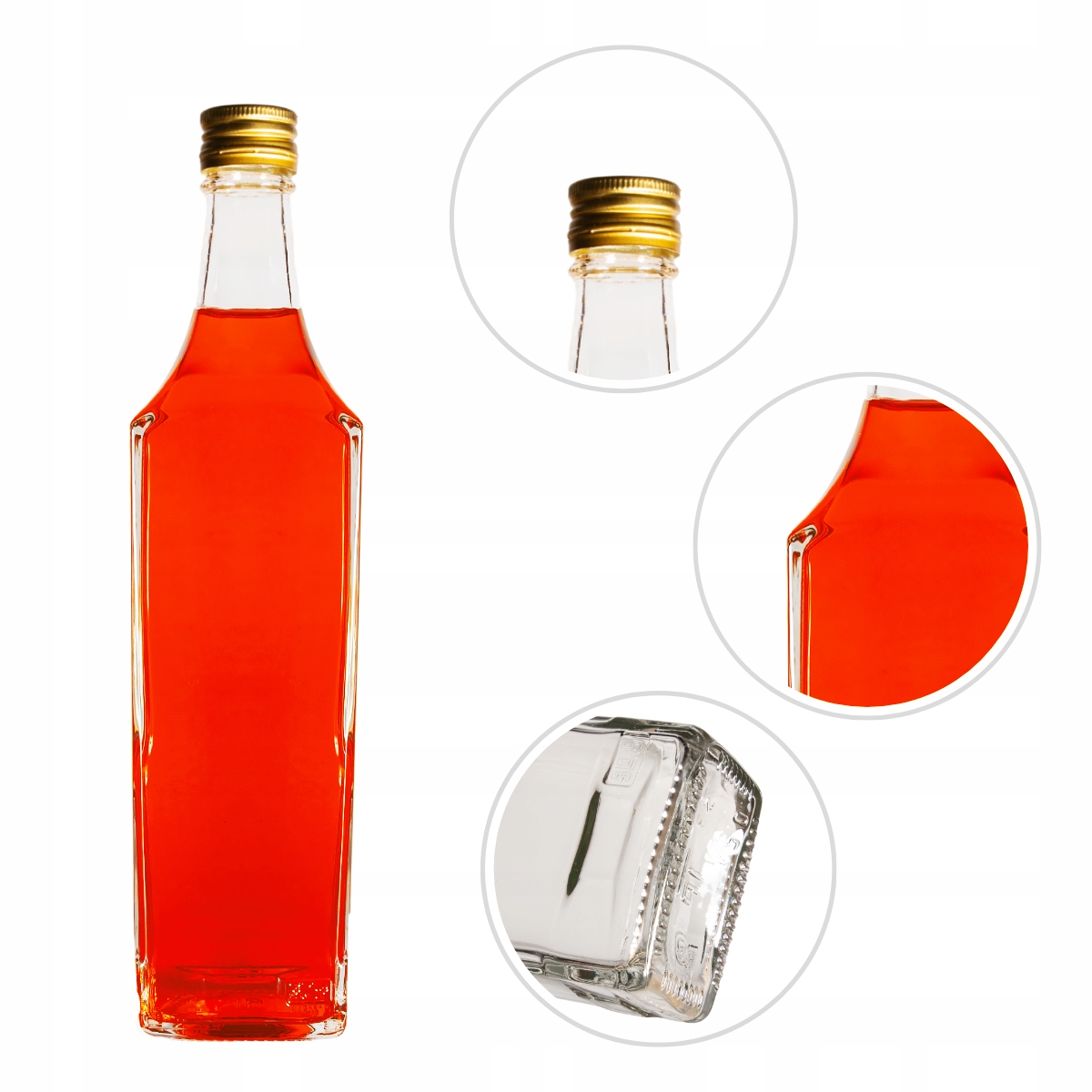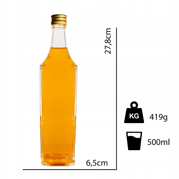 Скляна пляшка з ємність 500 мл з гордістю представить налитий в неї напій. Елегантна та дуже зручна пляшка стане чудовою упаковкою для смачних вин, горілок, лікерів та самогону.