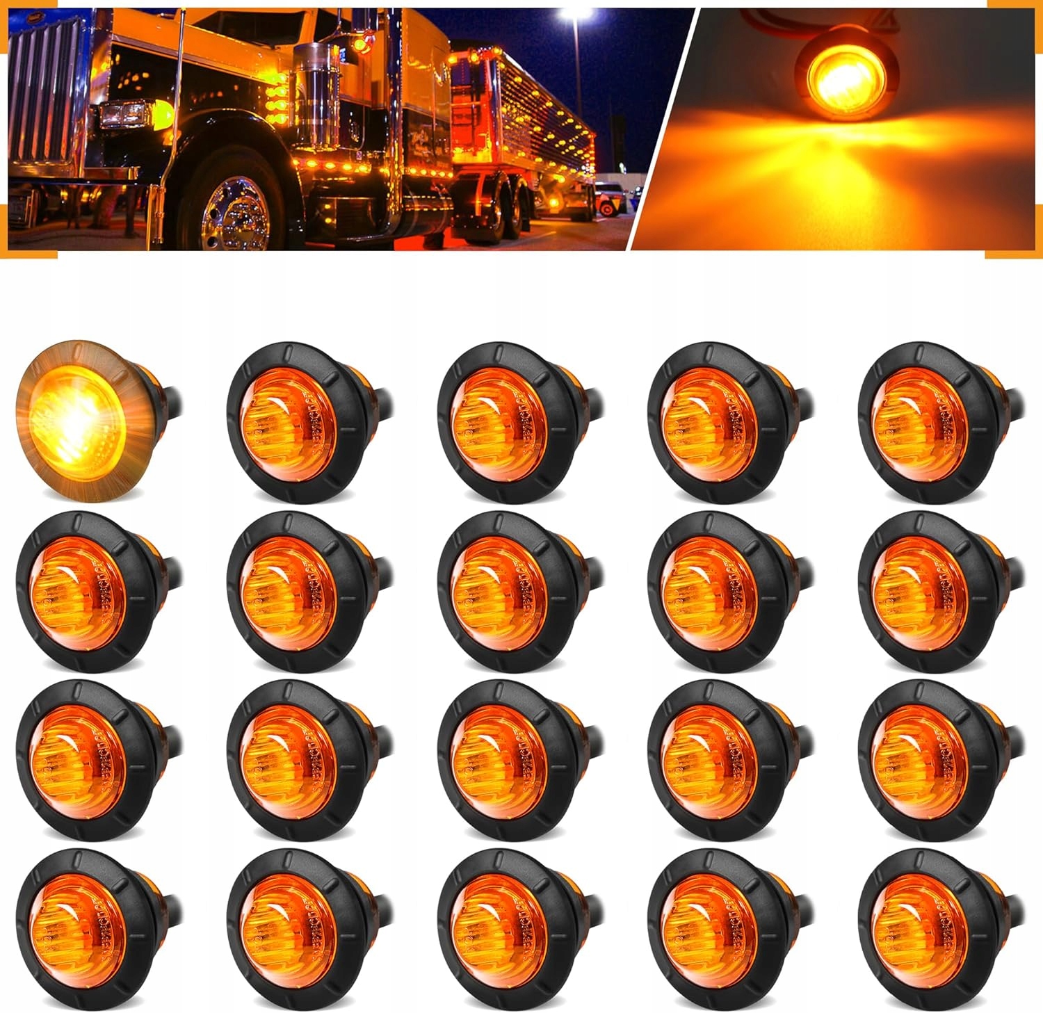 20 х 3 світлодіодні габаритні ліхтарі 12В/24В для причепа вантажівки, 3/4 дюйма, жовтого кольору