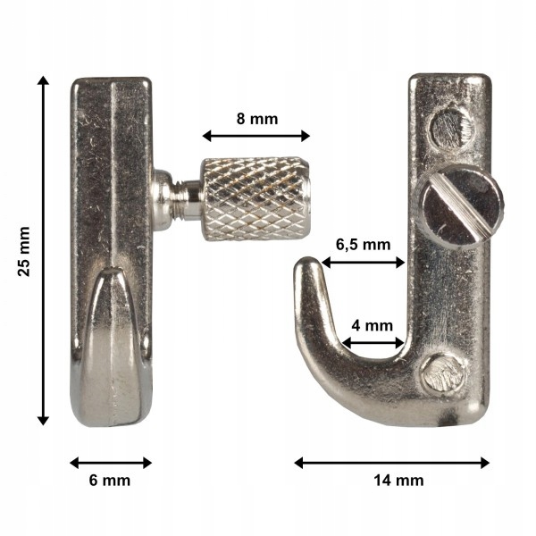 MIDI HOUC , нікель -з його невеликою формою робить відстань від стіни до об'єкта дійсно невеликим. Оснащений гвинтом, який дозволяє прикріпити його на вибраній висоті кабелю і дозволяє в майбутньому регулювати положення. Ці суцільні гачки в народі використовуються в системах підвіски на основі галереї шинки та посилань.