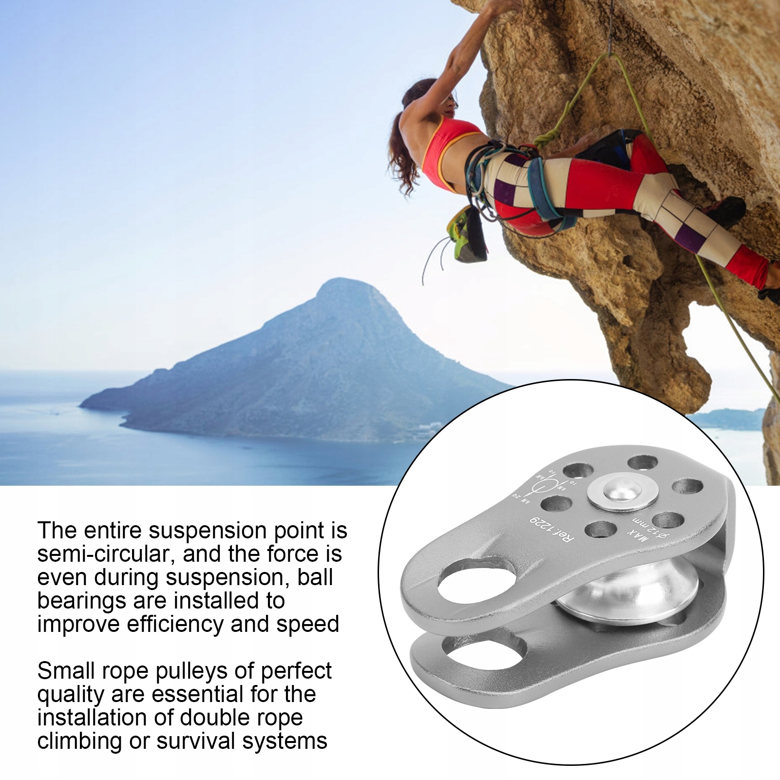 4. Він часто використовується в системах альпінізму для зменшення загального тертя та підвищення ефективності сходження.