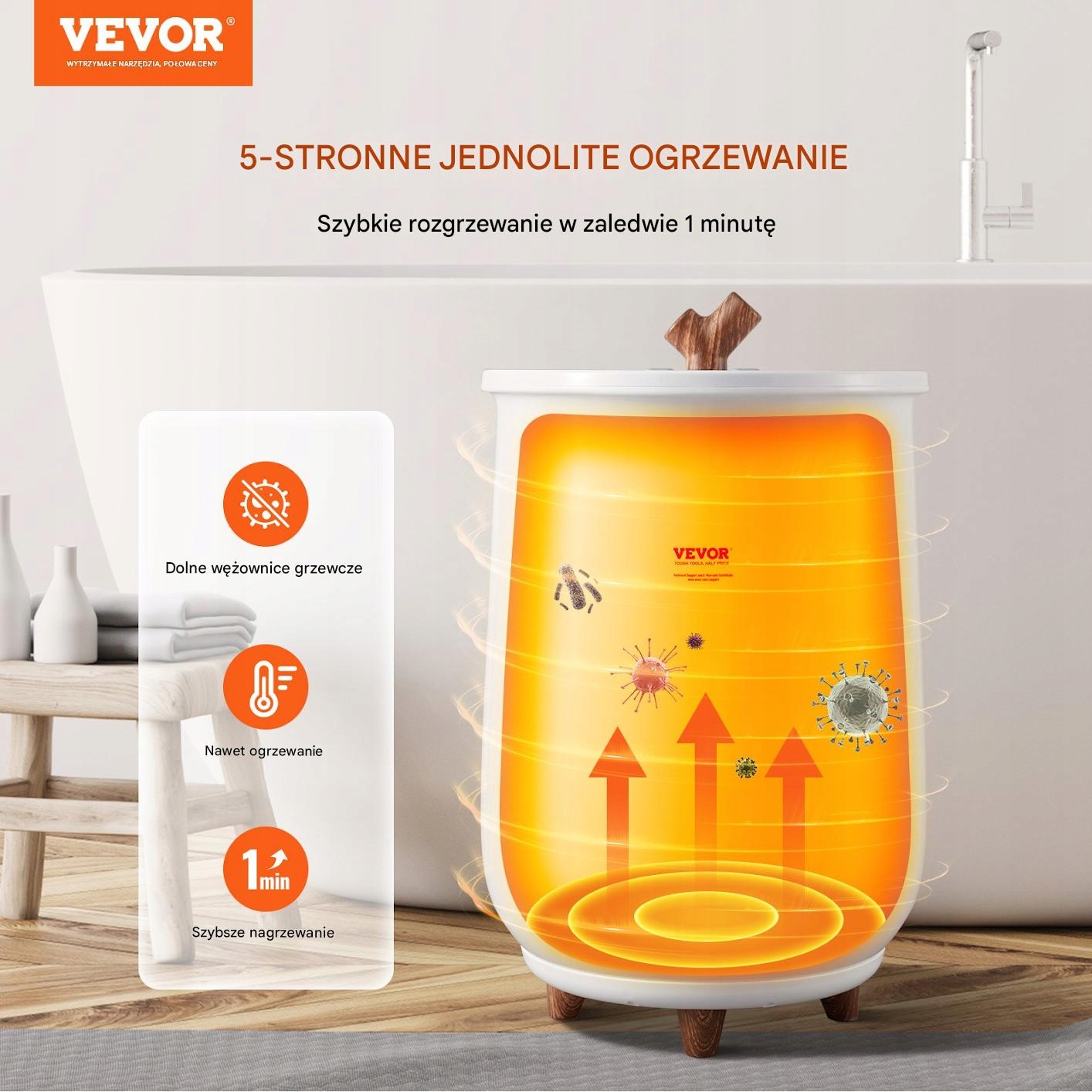 20L нагрівач рушника - ідеальне рішення для тих, хто цінує комфорт та релаксацію . Завдяки сучасній технології навіть опалення, це дозволяє насолоджуватися теплими приємними рушниками після кожної ванни. світлодіодна підсвічування та елегантний дизайн змушують пристрій змішуватися в кожній ванній кімнаті.
