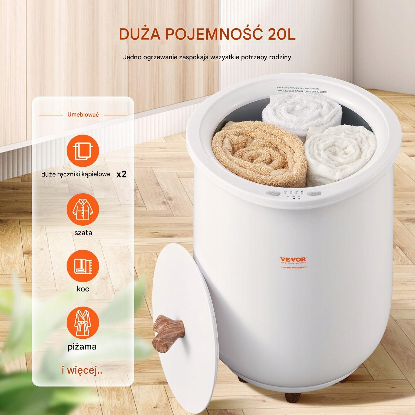 Швидке та ефективне нагрівання означає, що за кілька хвилин рушники готові до використання. Велика ємність 20 літрів дозволяє одночасно нагрівати кілька рушників, що робить його ідеальним вибором як для будинків, так і для готелів, спа -салонів або салонів краси.