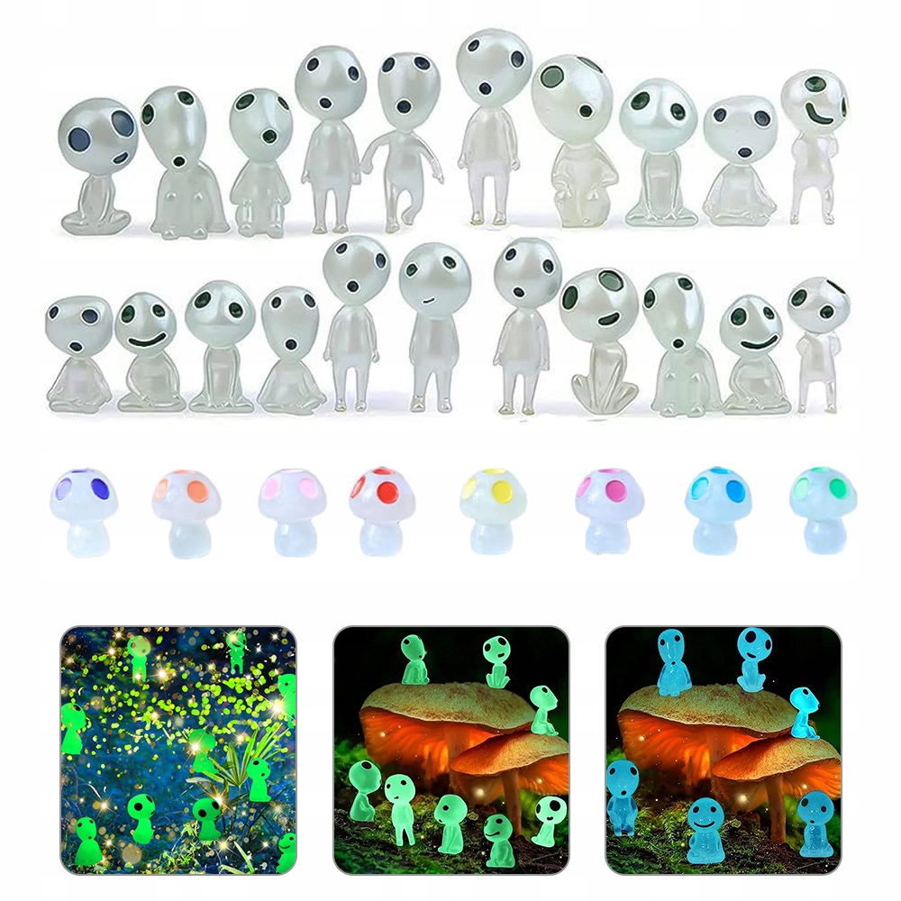 20 МІНІ-КОЛЬОРОВИХ ЕЛЬФІВ, ЩО СВІТЯТЬСЯ ПЛЮС 8 ФЛУОРЕСЦЕНТНИХ ГРИБІВ У ТЕМРЯВІ