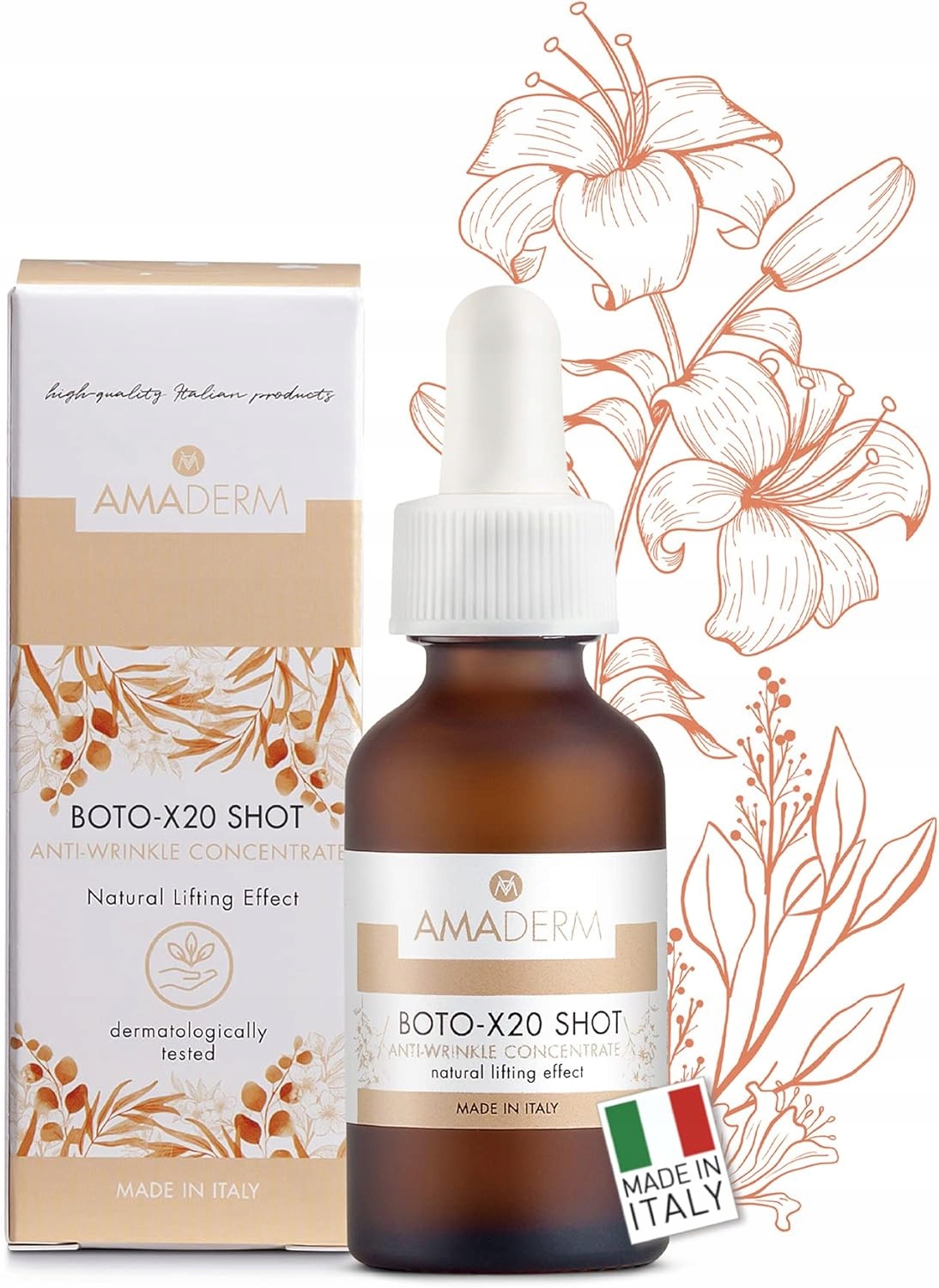 - Що це? Boto X20 -це концентрований препарат анти -пісні на основі гексапептидів, активних інгредієнтів з підняттям та гіалуроновою кислотою. Ця формула з природним підйомним ефектом покращує компактність шкіри та гідроліпідний баланс, зменшуючи видимість ознак старіння від першого застосування.