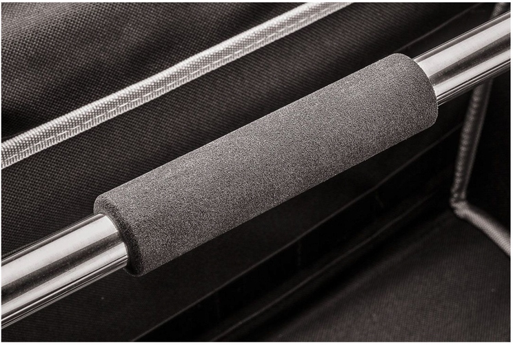 Сумка оснащена міцною ручкою і ремінцем для перенесення.