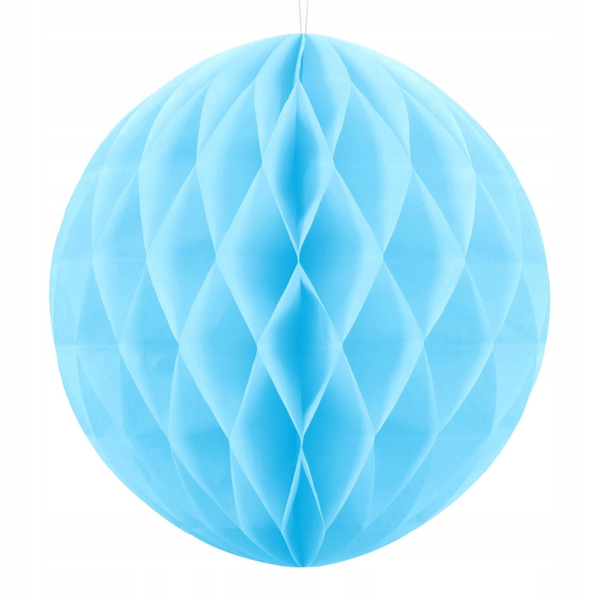The Представлена паперова куля зі стільниковою структурою виготовлена з високоякісного цигаркового паперу синього кольору. М’яч постачається зі шнурком відповідного кольору, який полегшує його підвішування.