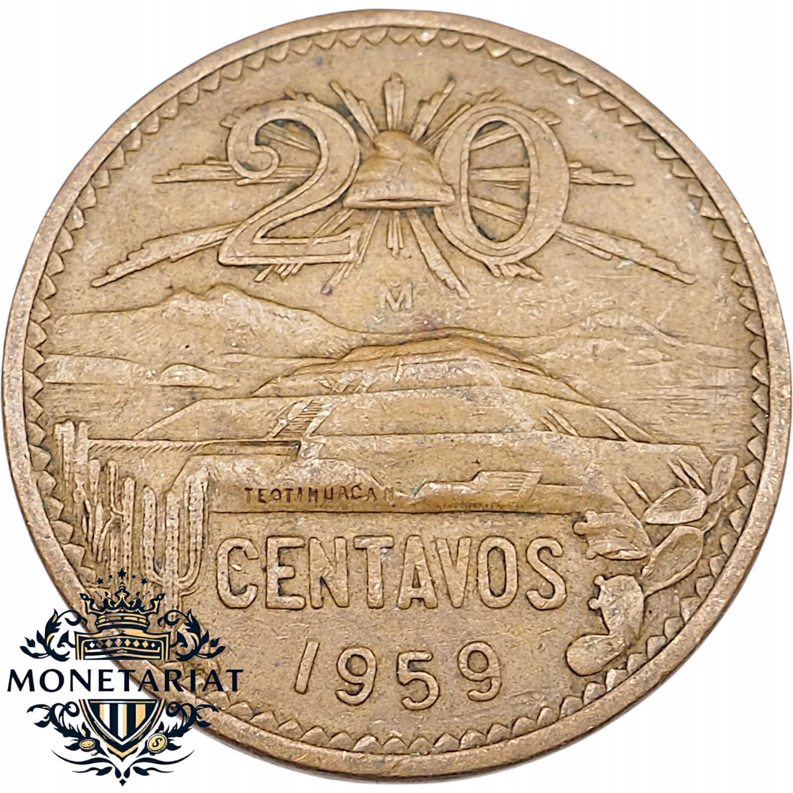 20 СЕНТАВО 1959 МЕКСИКА - РІДКІСНІСТЬ