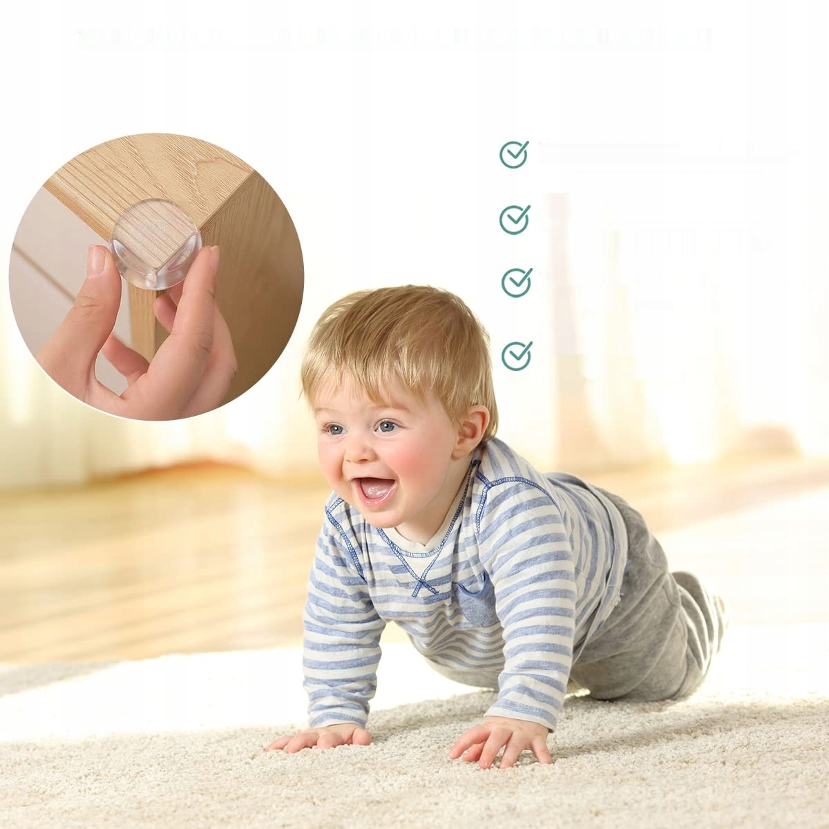 ✅ Два типи кутового захисту - ми пропонуємо 8 круглих куточків і країв та 12 квадратних захисників столів, які можна встановити не тільки на столах, але і на книжкових шафах для книг, низьких шаф та інших меблів. Наш захист дитячих меблів ідеально підходить до всіх видів меблів, незалежно від того, виготовлений з дерева, скла чи металу. Куточок столу для дітей створює безпечне середовище для немовлят та маленьких дітей.