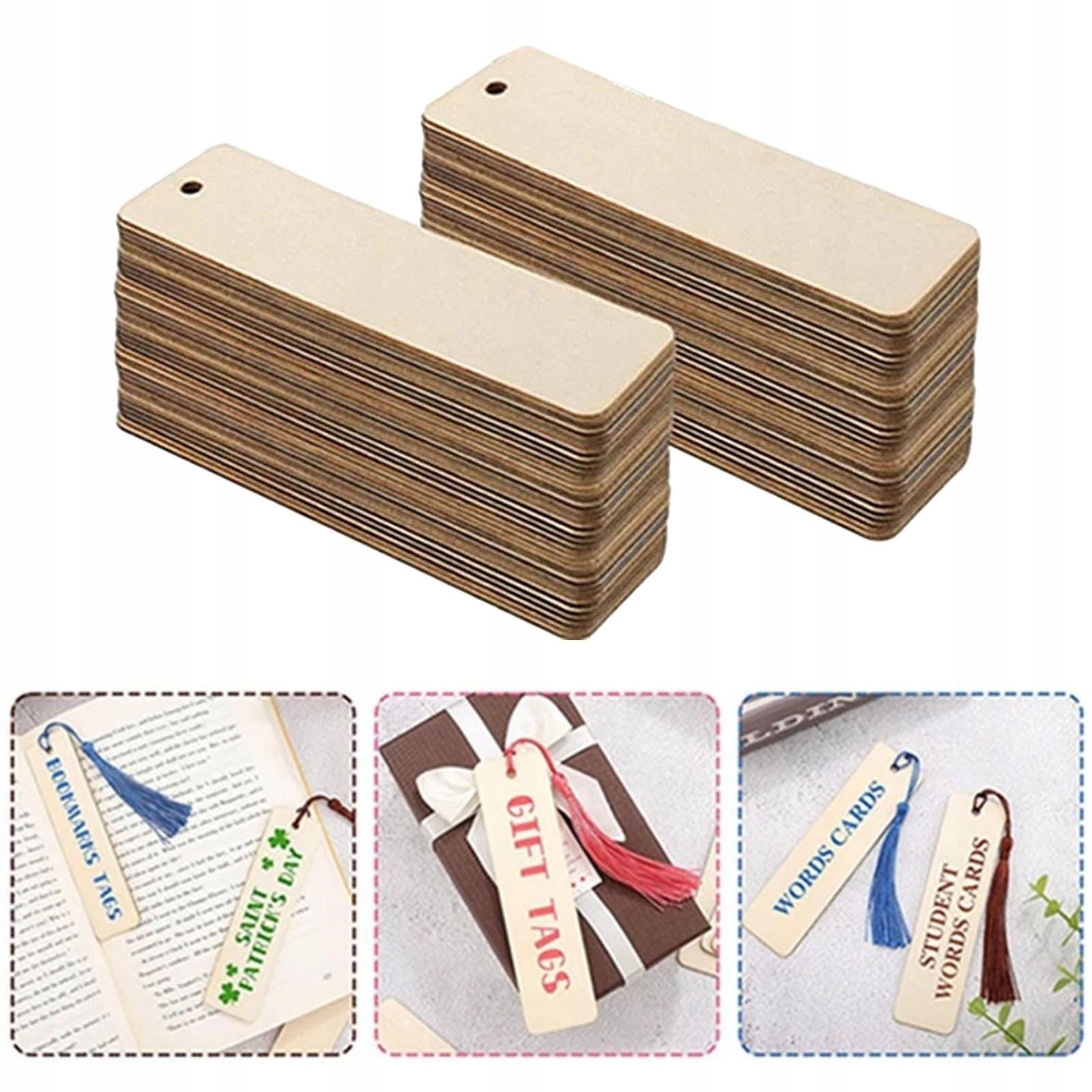 Включено 20 дерев'яних закладок з барвистими струнами, які є чудовим поєднанням, завдяки якому ви можете створити приємні висячі прикраси та задовольнити різні потреби, пов’язані з DIY. > Дерев’яні, прямокутні прикраси підвіски, кожна вкладка має отвір, ви можете використовувати для повіслення прикрас. Для використання в якості етикетки, дощок для партій, дощок класу.