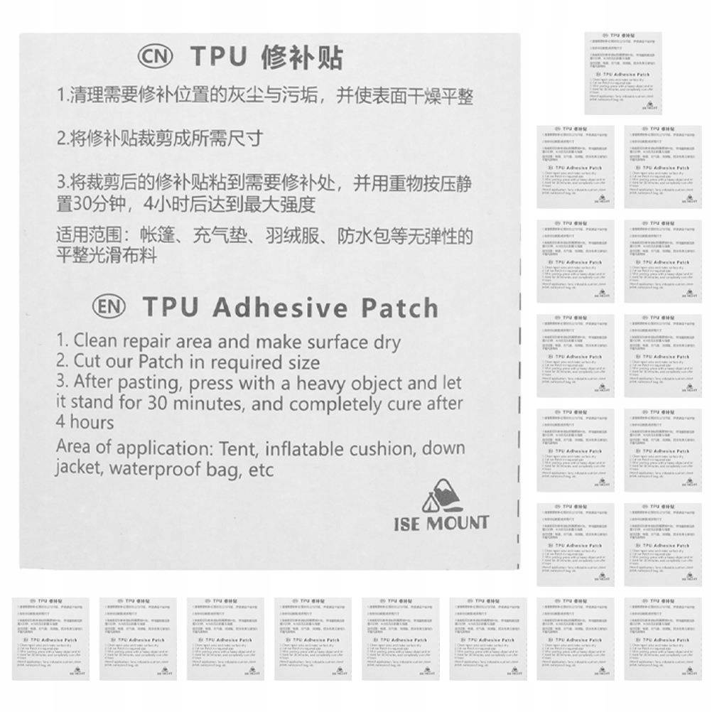 ✅, що проводяться з матеріалу ТПУ, ремонтні патчі є міцними, клейкими, твердими, стійкими до холоду та температури. Його можна використовувати для тенту, плащів, намету, одягу, вінілових меблів, повітряних матраців, понтону, плавання, надувних іграшок, парасольки та інших. Невеликий і вишуканий, простий у магазині, не займає місця.