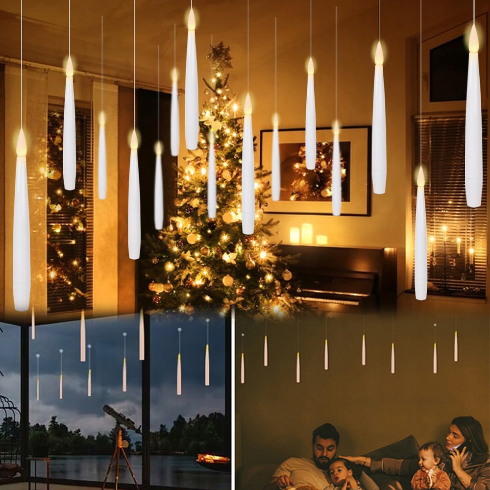 ✨【Набір із 20 плаваючих свічок для створення чарівної атмосфери】 Цей набір включає 20 плаваючих свічок. Кожна світлодіодна свічка має висоту 16,9 см і поставляється з волосінню 150 см. У комплект входить пульт у формі палички. Кожна плаваюча свічка живиться від однієї батарейки типу ААА (не входить в комплект). Додатковий подарунок - 1 волосінь довжиною 30м. Додайте чарівного штриха до свого дому за допомогою цих плаваючих свічок.