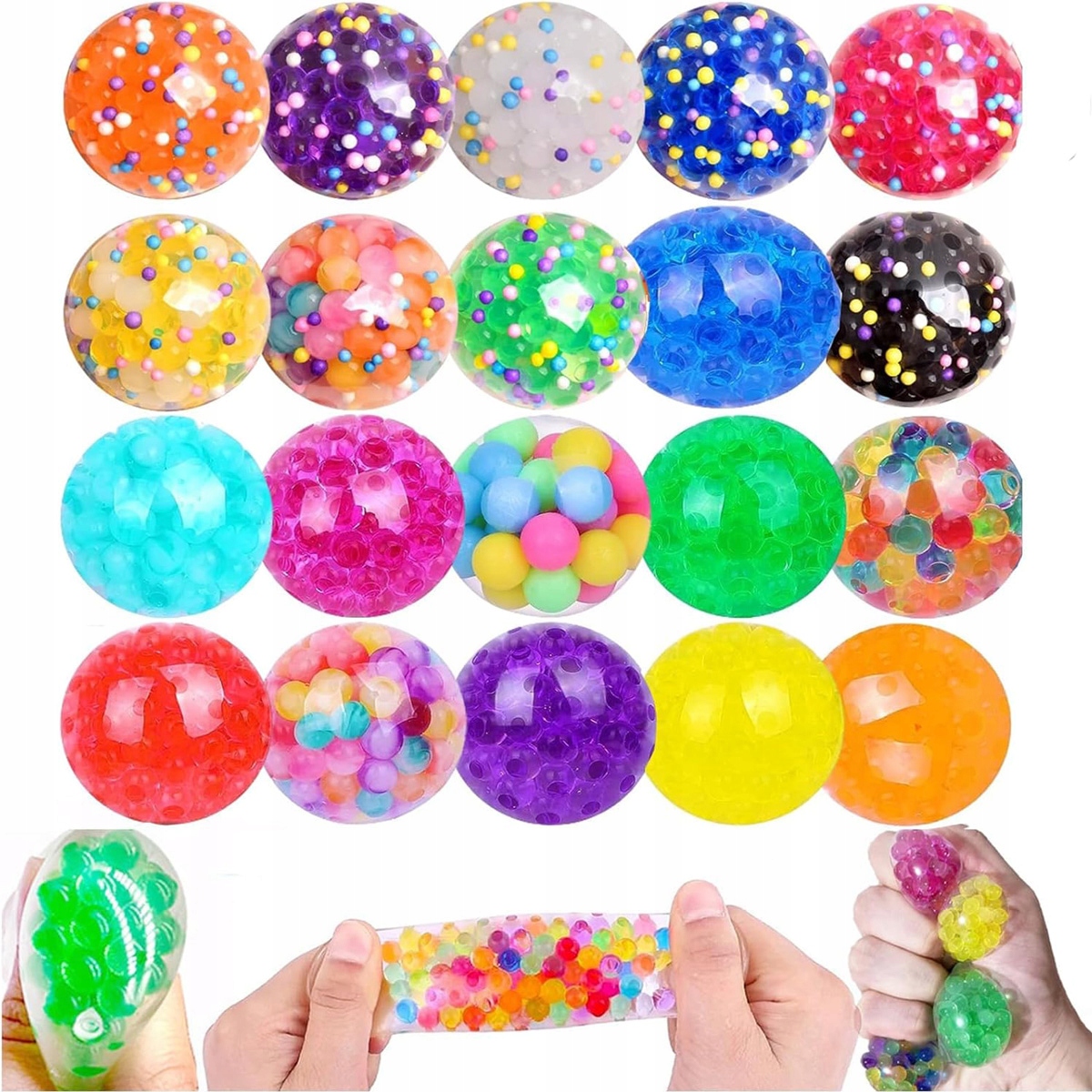 Ви отримаєте оптом 20 антистресових кульок для дорослих. Два види (поролоновий та з намистинами), всі кольори підібрані випадковим чином ‼️ М'яч антистрес - милий і м'який м'який м'яч діаметром 35 мм, ідеально лежить в руці. Ці дитячі стрес-м’ячі можна легко зберігати в сумках, рюкзаках, сумочках тощо як іграшку для подорожей.