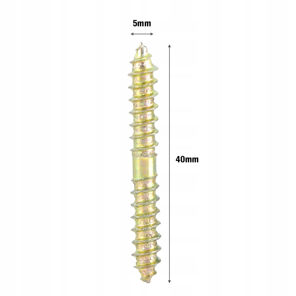 20 штук 5*40 мм Дюбель-гвинтовий з’єднувач для деревообробних меблів, подвійний гвинт