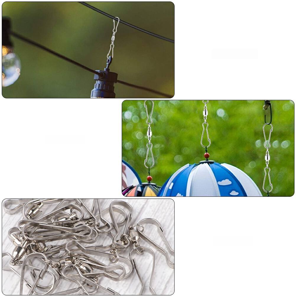 ✅Виготовлені з твердої нержавіючої сталі, ці поворотні подвійні затискачі мають тривалий термін служби та чудові характеристики, які можуть служити вам добре. Можна використовувати у дворах, парках, садах, на балконах та інших місцях, щоб допомогти повісити дрібні предмети. Конструкція, що обертається на 360 градусів, забезпечує велику зручність використання.