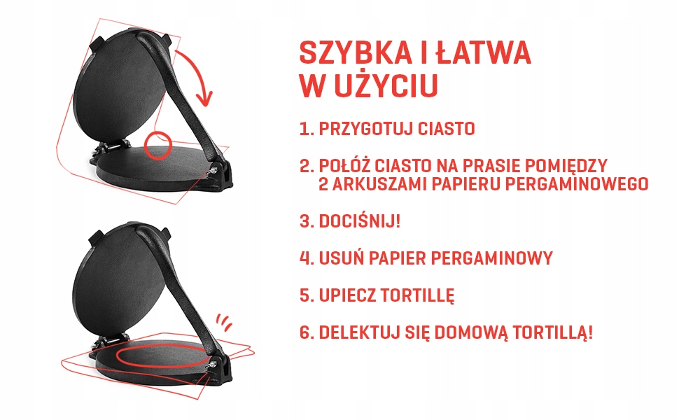 чавунний прес для тортилії з діаметром 20 см - це міцний кухонний інструмент , який був звільнений так, щоб ви могли почати його відразу.