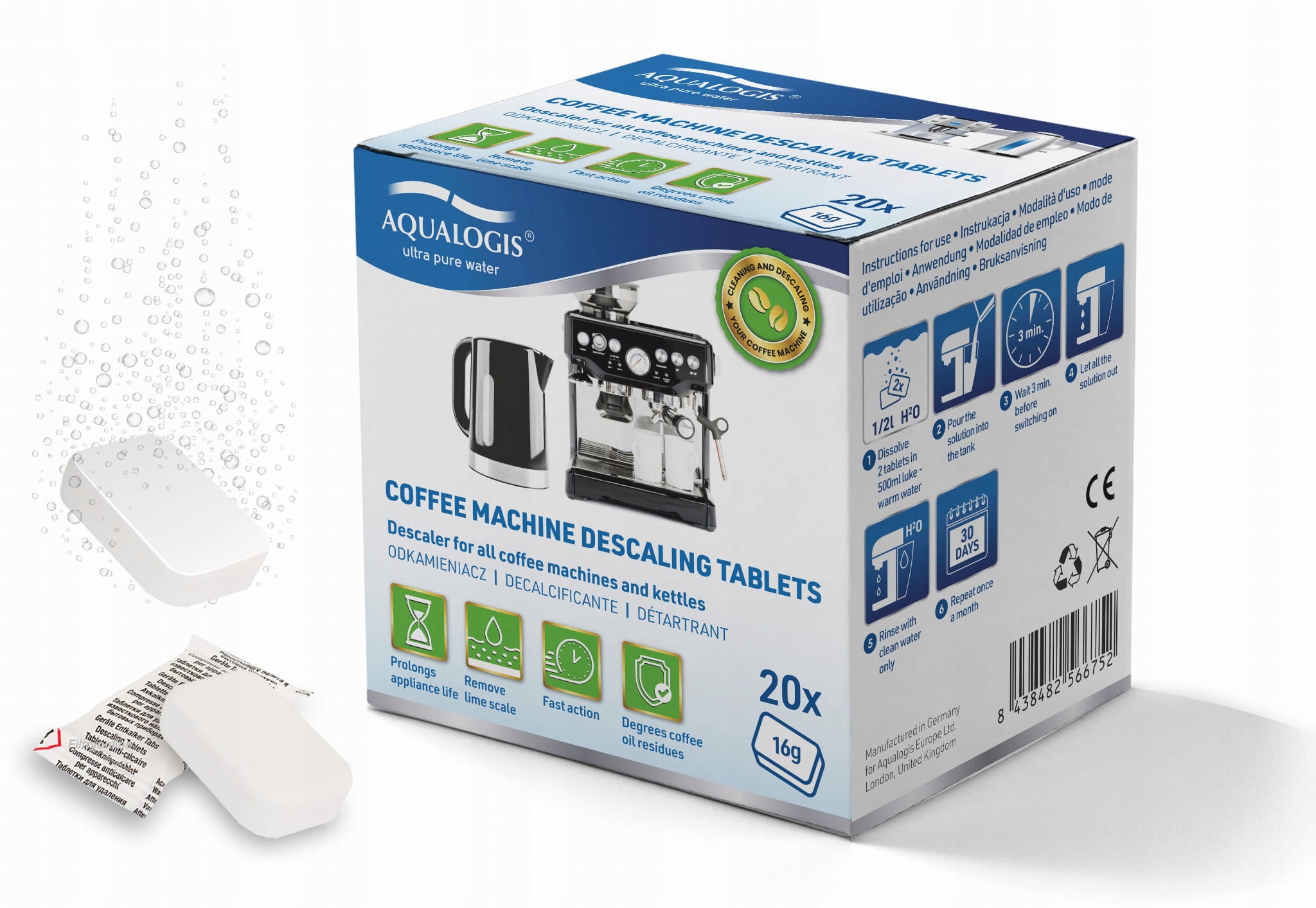 Aqualogis Decalc - універсальні таблетки для видалення накипу, які підходять, зокрема, для кавових машин: