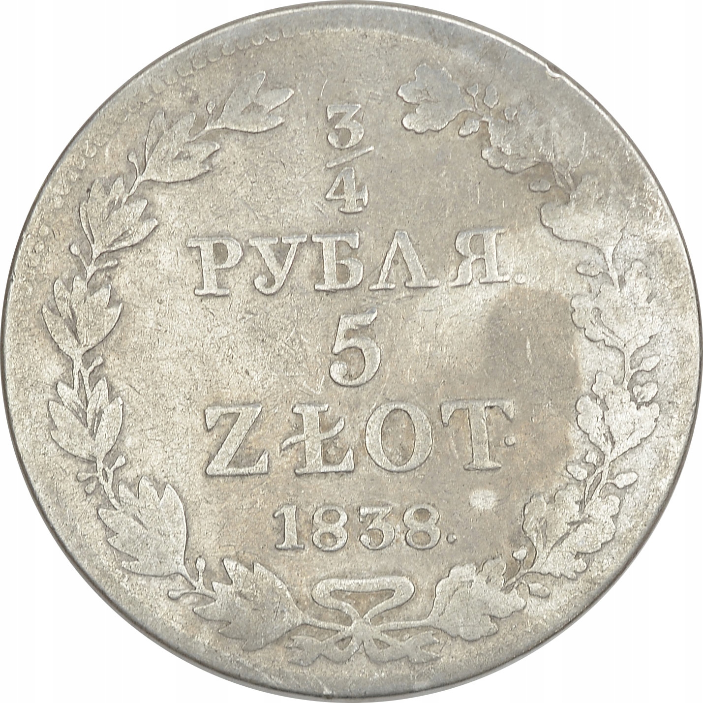 20.gp.ZABORY , КОРОЛЬ ПОЛЬСЬКИЙ, 5 PLN/ 3/4 РУБЛЯ 1838 МВт.