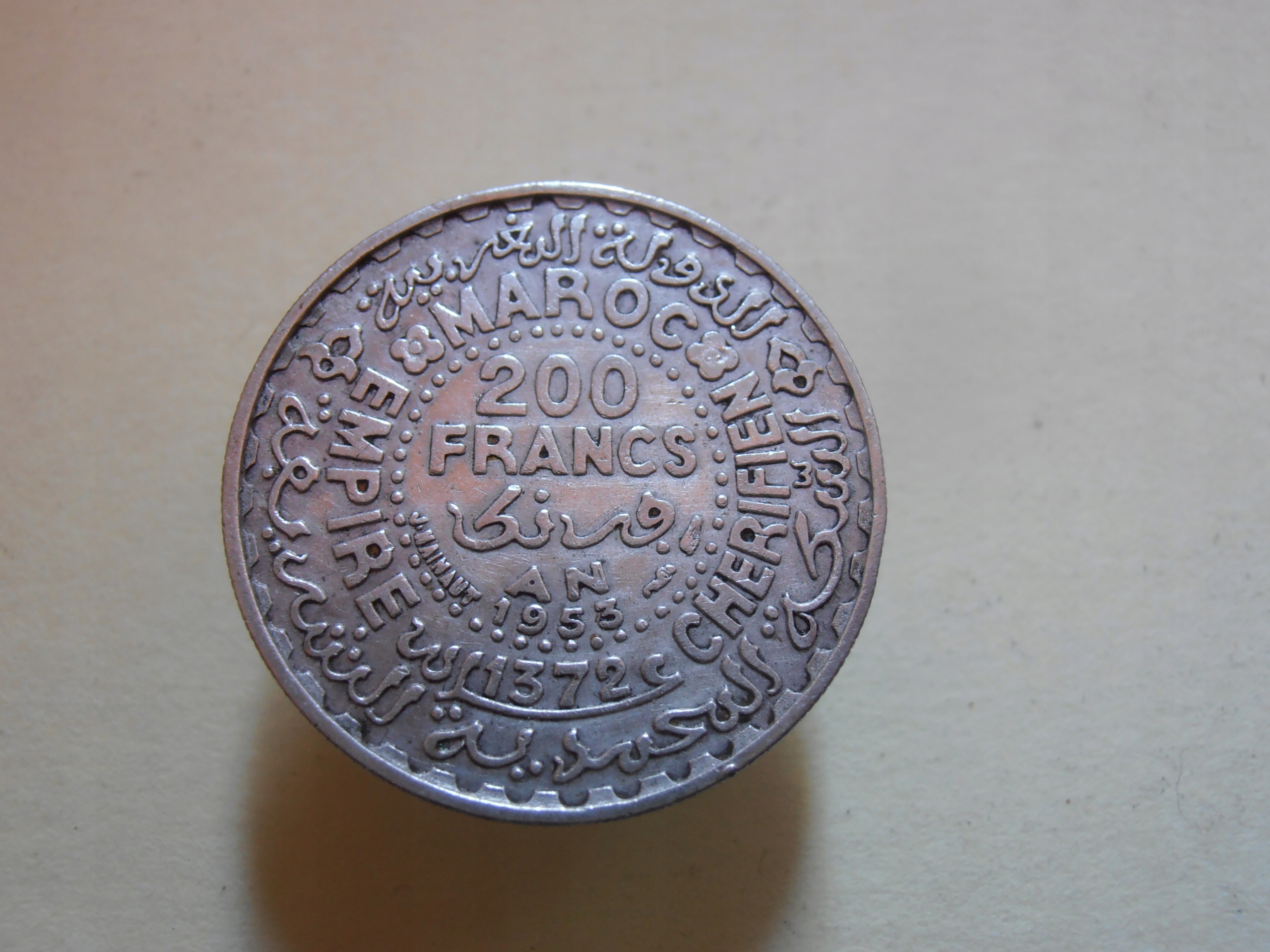 200 franków 1953 r. Maroko srebro.