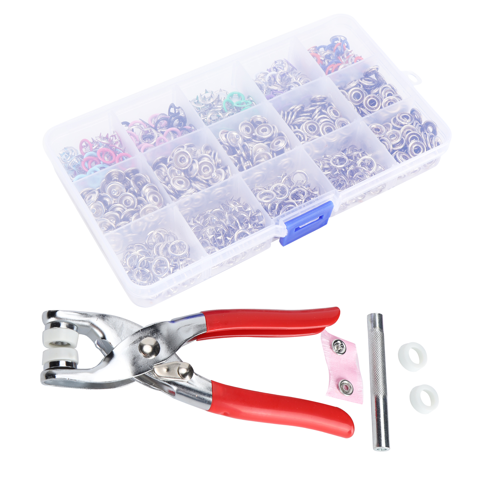Функція: 1. Включаючи 200 наборів порожніх засувок у багатьох різних кольорах, які відповідають усім потребам вашого кравця. Завдяки суцільній конструкції та високоякісній латуні, кріплення гарантує міцне кріплення тканини. Підходить для створення комбінезонів, сорочок, взуття, сперхових, спідниць, саморобних та інших виробництва одягу. Також доступні плоскогубці, які значно сприяють встановленню засувки. У комплекті з великим місцем для зберігання всі 200 наборів кріплення можна зберігати впорядковано. 200 порожнистих наборів металевої засувки