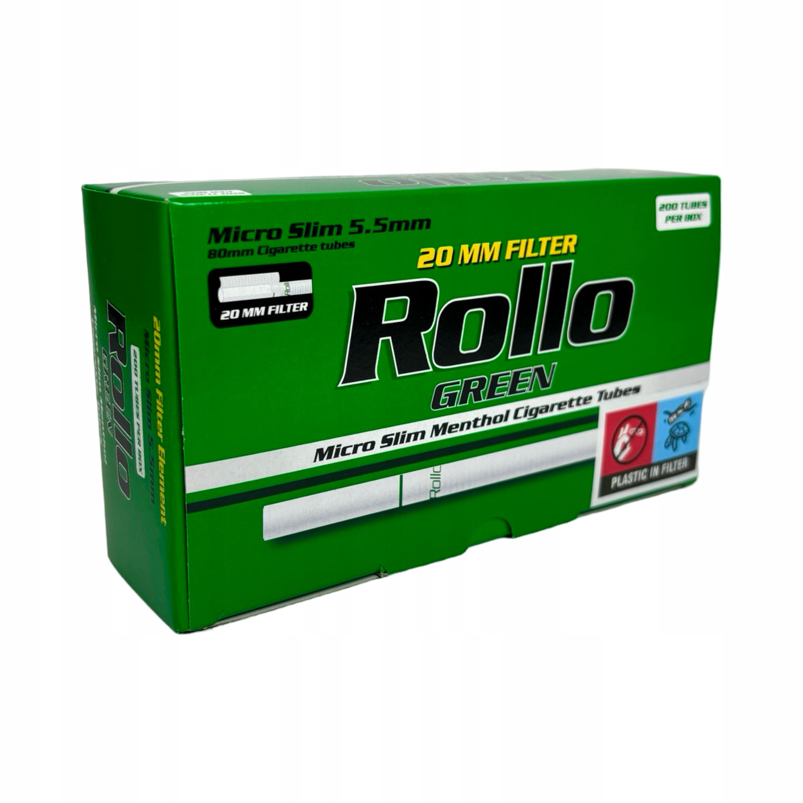 200 ROLLO GREEN MENTHOL MICRO SLIM 5.5mm CIGARETTE BUBLES MINT