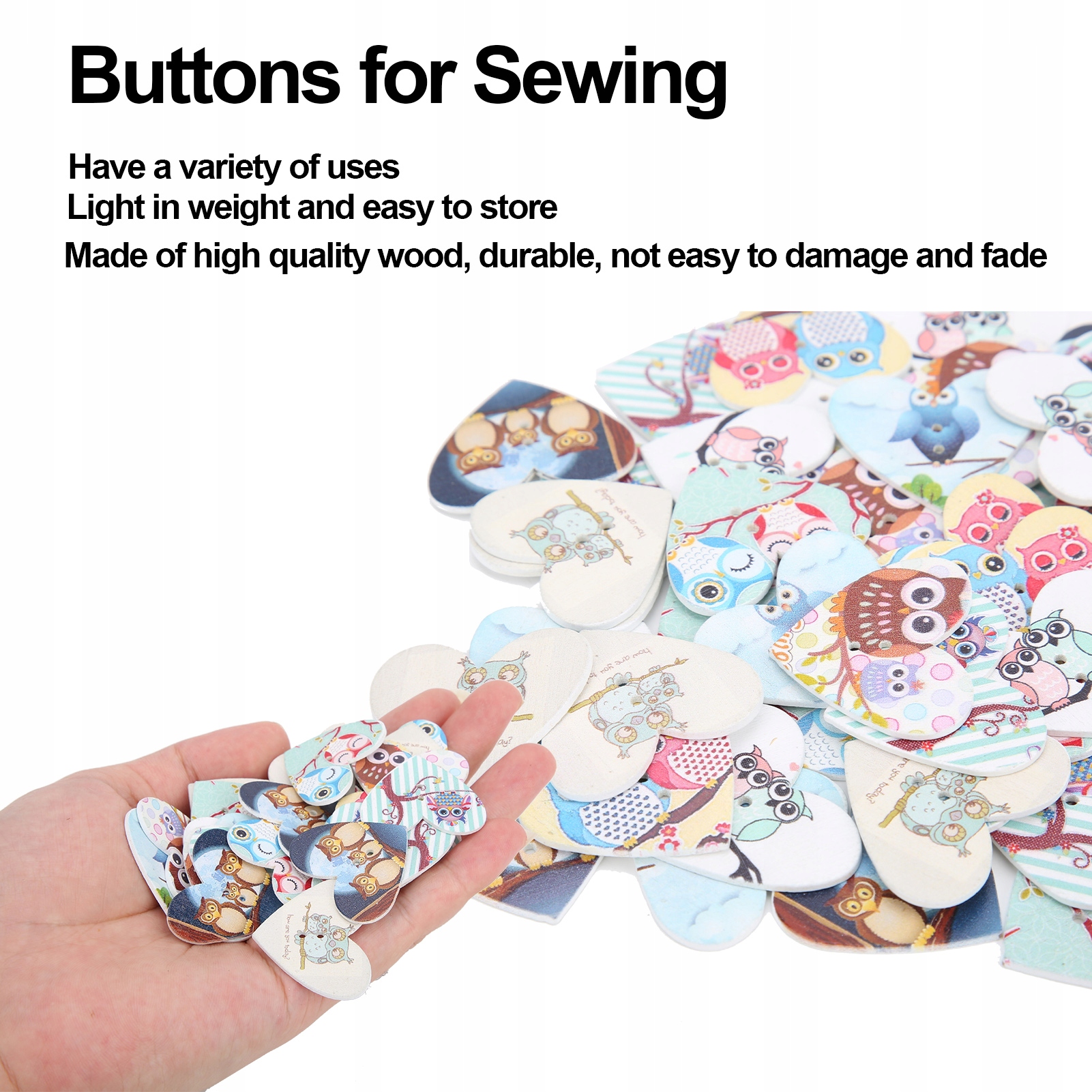 Дерев'яні ґудзики, 2 отвори, сова у формі серця, 200 штук, аксесуари для прикраси дитячого одягу