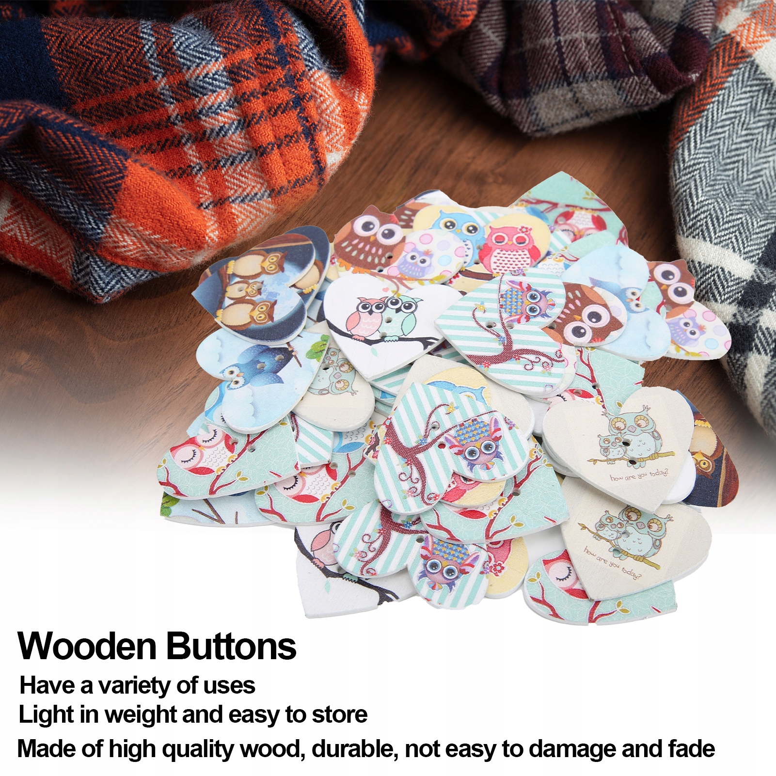 200 шт. дерев’яних ґудзиків з 2 отворами, аксесуари для сови у формі серця