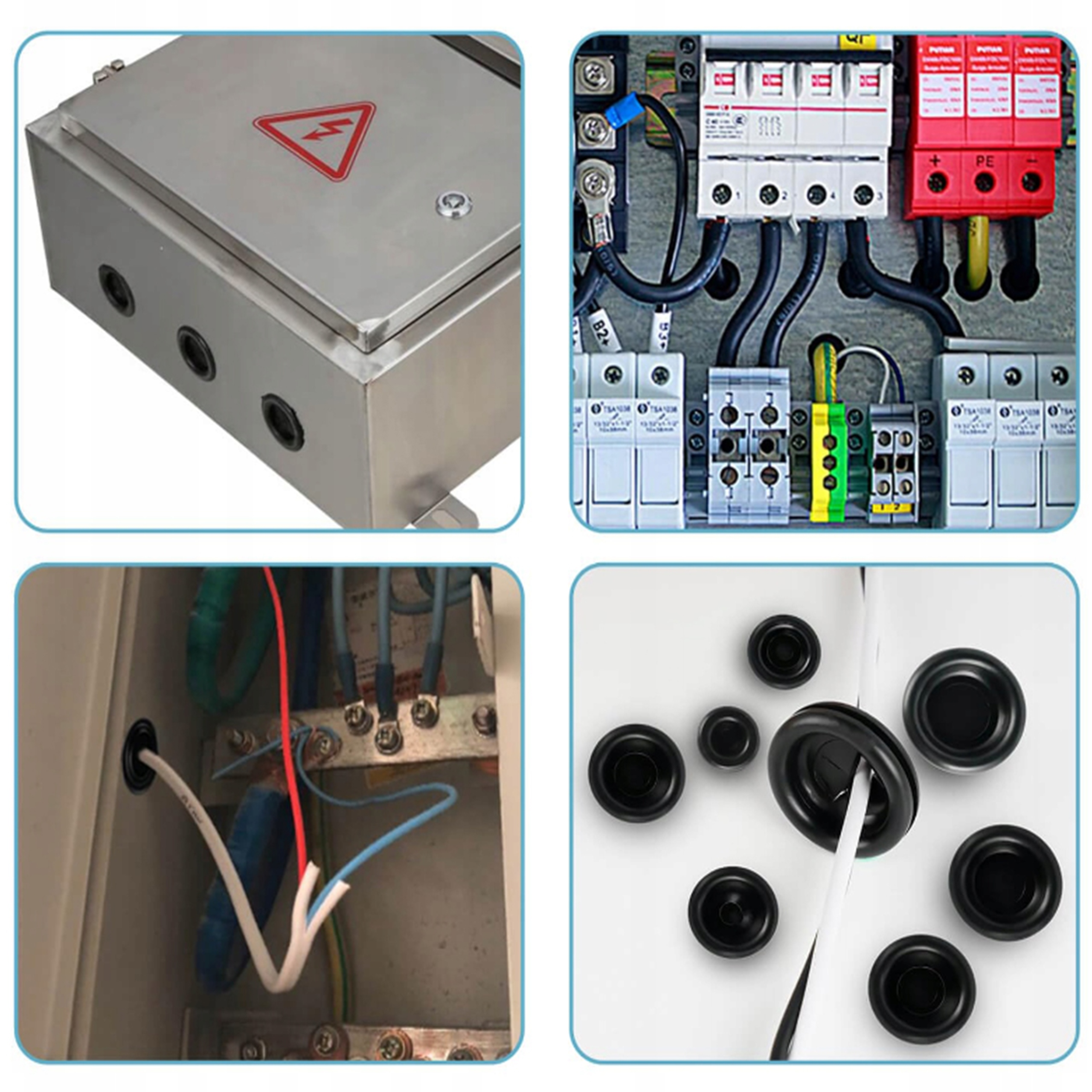 ✅Висока якість: закрита гумова втулка, виготовлена з високоякісного матеріалу, має високу еластичність, стійкість до старіння, запобігає згортанню, має сильну ізоляційну функцію, пилонепроникна, ізольована, вогнезахисна та захищає дроти чи інший матеріал від тертя металу.