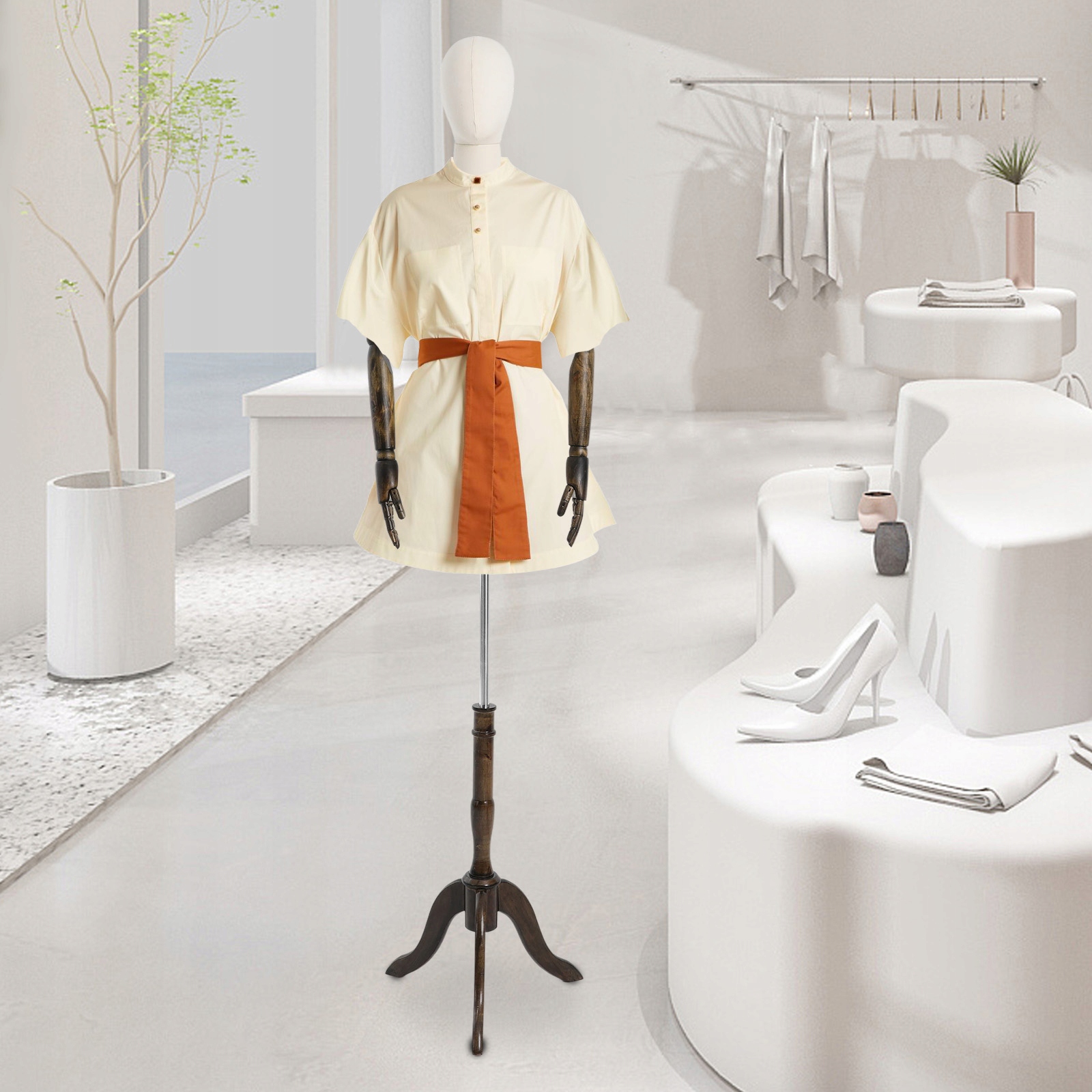 довга стерма: , виготовлена з суміші пластику, масиву деревини та металу, цей манекен зазнає процесу розпилення. Достовірність до впливу та подряпин забезпечує виняткову надійність, гарантуючи тривалий термін експлуатації. Це означає, що виставки одягу відповідають тому, як виглядають наряди, коли вони насправді носять.
