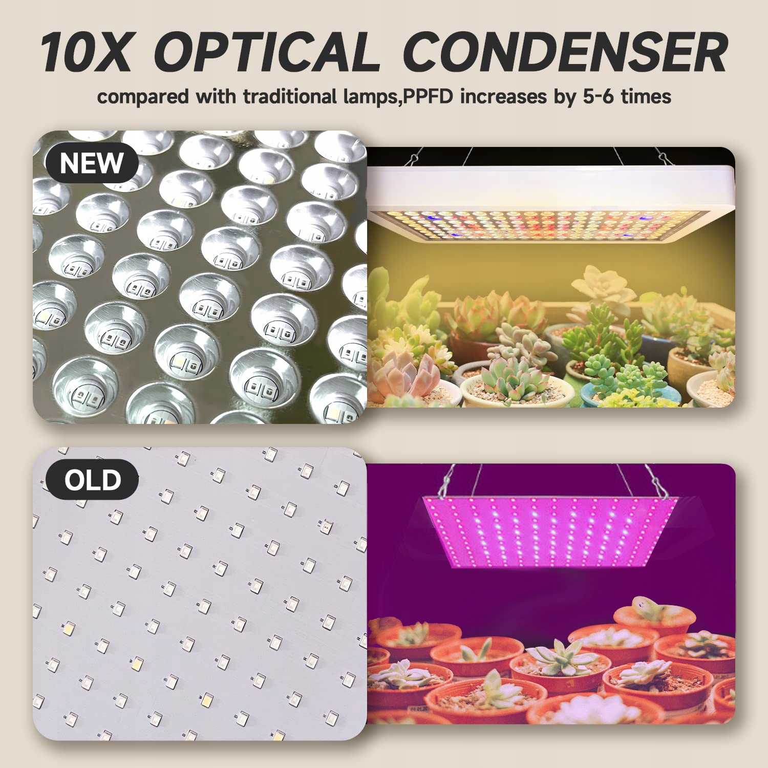 【нові вдосконалення】 . Порівняно зі звичайними лампами для вирощування, новий світлодіодний світло зі 100 Вт -подвійним чіпом є більшим, яскравішим та ефективнішим. Це світло може замінити звичайну лампу HPS/MH потужністю 2000 Вт, споживши лише близько 100 Вт! покращити середовище росту рослин. Світло включає червоний, синій, теплий білий, білий, ІЧ та УФ. Ідеально для всіх типів домашніх рослин, овочів та квітів на кожному етапі росту. і молоді рослини. Канал Bloom використовує більше червоних хвиль для імітації кінця літа і найкраще підходить для рослин у фазі цвітіння. Овочі та цвітіння можна використовувати разом для сприяння максимальній ефективності росту від розсади.