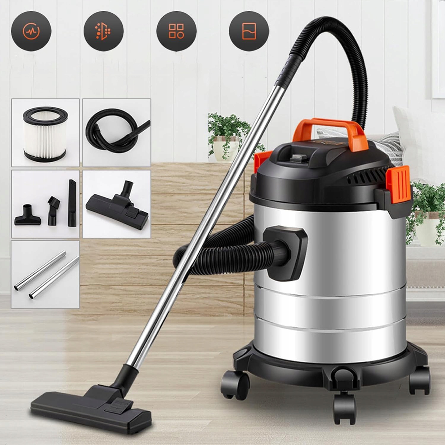 2000 Вт ПИЛОСОХ З НЕРЖАВІЮЧОЇ СТАЛІ, ТИХИЙ 18 КПА ДЛЯ ВОЛОГОГО І СУХОГО ВИКОРИСТАННЯ
