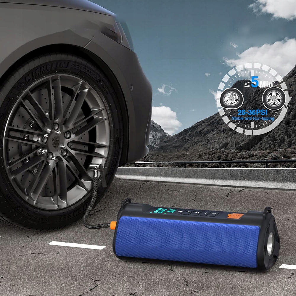 ✅【Комп’ютер для накачування автомобільних шин 150 PSI зі світлодіодним дисплеєм】Він оснащений великим, зручним світлодіодним дисплеєм для точного зчитування даних. Наш автомобільний міні-компресор використовує унікальний механізм турбонаддуву, що забезпечує максимальний тиск 150 PSI і потік повітря 35 л/хв. Підтримує визначення тиску в шинах, налаштування зупинки та зміну одиниць.