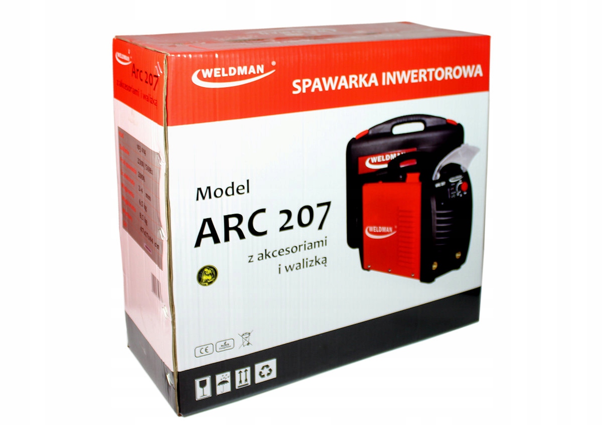 Інверторний пристрій ARC 207 від WELDMANє легким портативним джерелом енергії. Застосовується для зварювання покритими електродами різних видів сталі, в тому числі звичайної, нержавіючої, жароміцної і чавуну. Призначений для роботи в польових умовах і виконання всіх видів ремонтних робіт. Пристрій характеризується високим ККД 200 А/60%. Має відмінні характеристики дуги для рутилових і основних електродів.