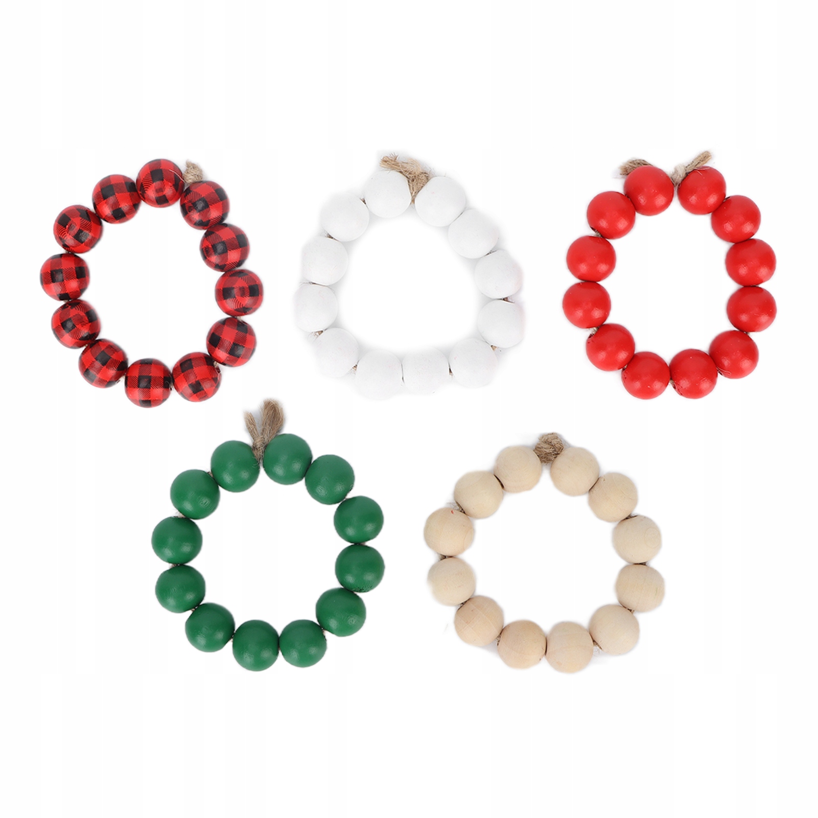 2. Дерев'яні намистини: ці різдвяні дерев'яні намистини різних кольорів виготовлені з міцного деревного композиту. Поверхня добре відшліфована та пофарбована в класичні кольори, мила та балакуча, ворсинки можуть вицвітати та вицвітати.