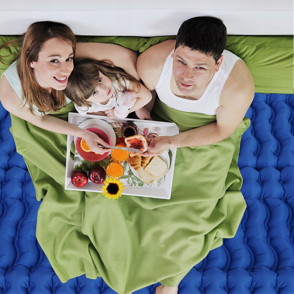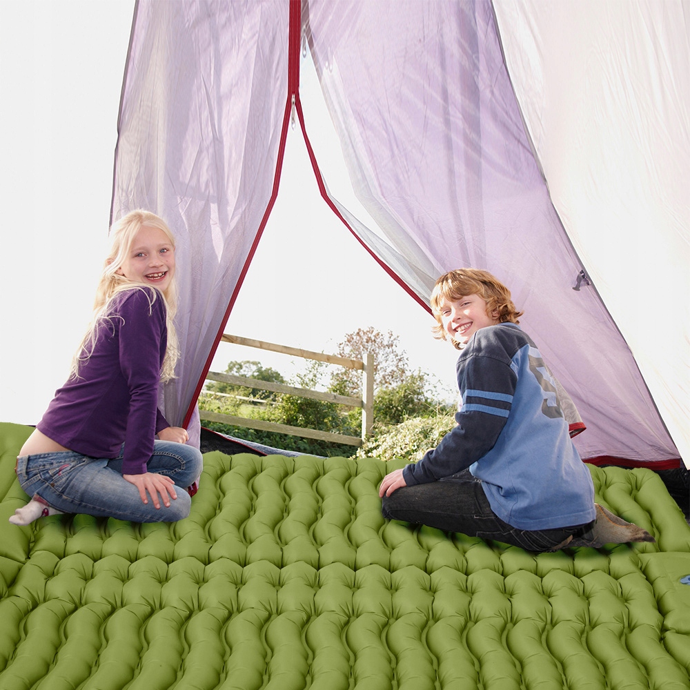 Ультра -світлий спальний килимок виготовлений з товстого 40D нейлону з покриттям TPU, який стійкий до сліз, вологи, легкого для очищення та більш герметизованого для запобігання витоків повітря. Наш надувний спальний килимок для 2 людей пройшов суворий контроль якості, тому ви можете використовувати його з упевненістю.