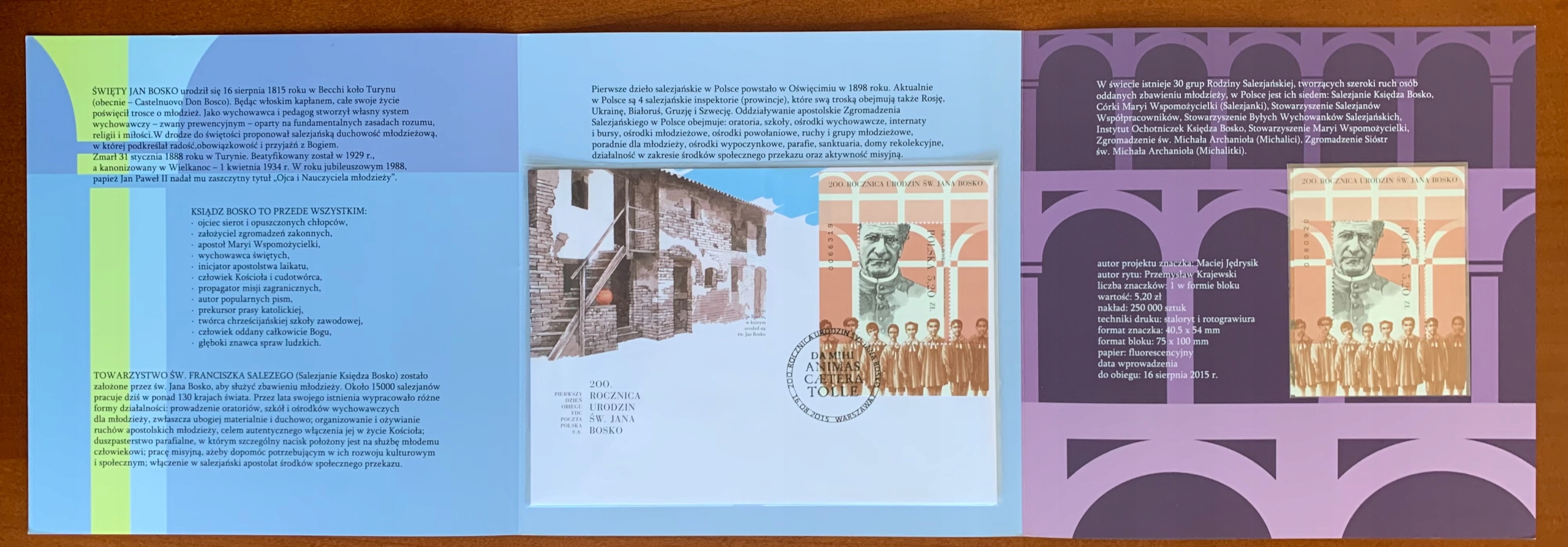 2015 Św. Jan Bosko Fi blok 278 ** + FDC folder