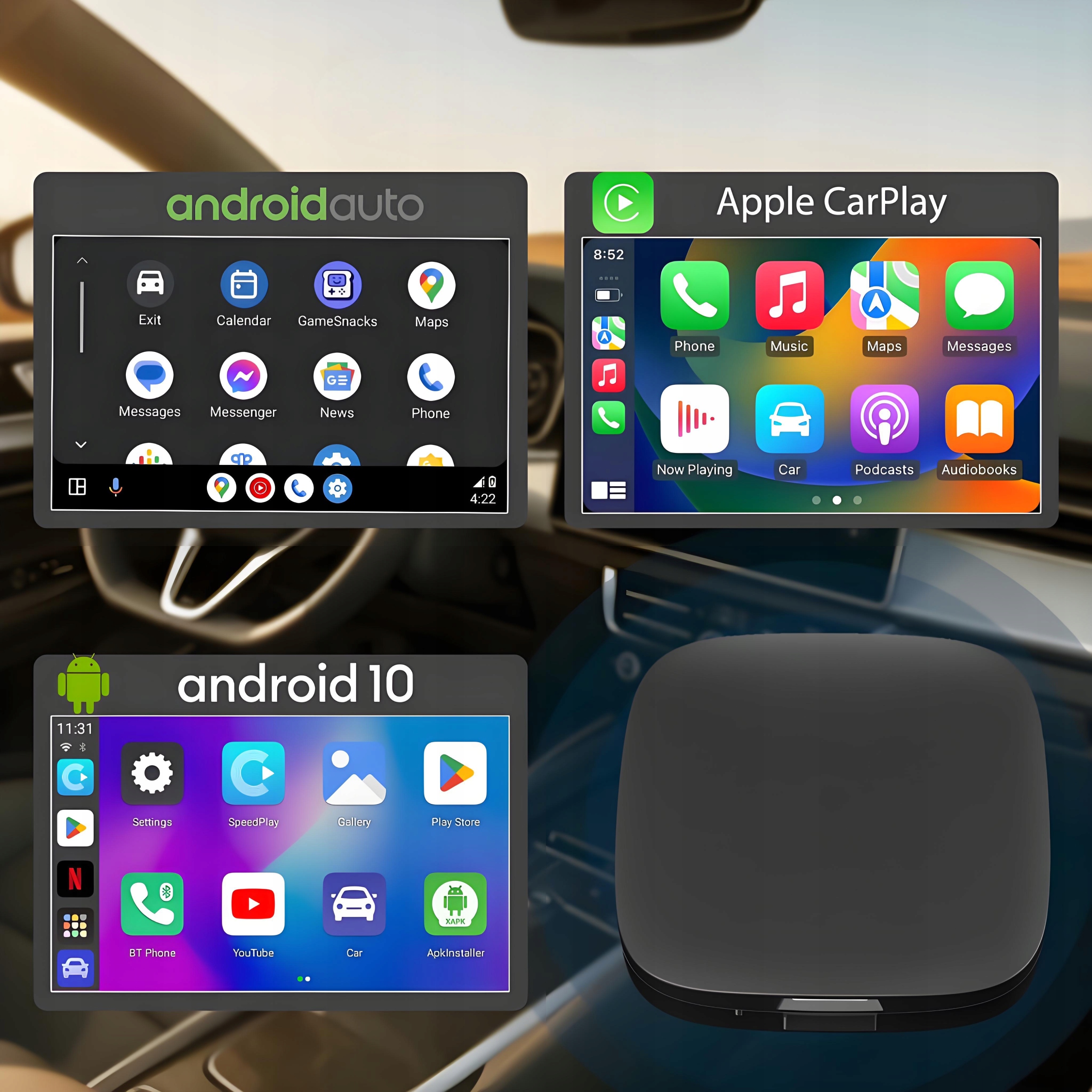 Перетворіть свій автомобіль на передовий розважальний і навігаційний центр!Наш інноваційний 3-в-1 AI Box — це універсальне рішення, яке плавно поєднує світ вашого смартфона з мультимедійною системою вашого автомобіля. Завдяки підтримці